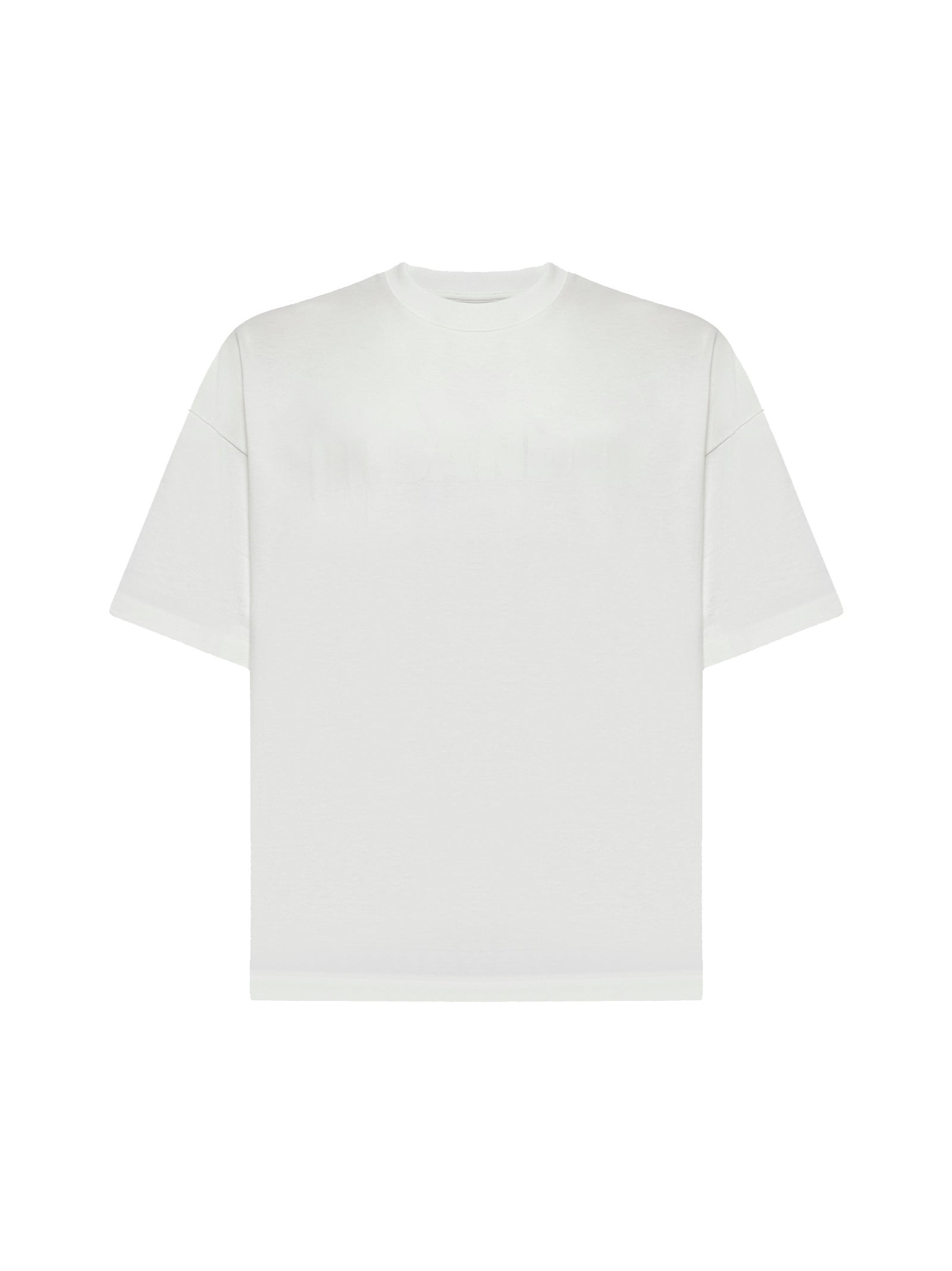 •Ribbed crewneck •Short sleeves, dropped shoulders •Tone-on-tone Jil Sander logo printed at front •Stiff lightweight cotton jersey •Oversized and boxy shape •Ivory color •100% Cotton •Made in Italy Size and fit: Model is 184 cm tall and wears size M Country of manifacture: ITALIA ID designer: J21GC0168J20243102