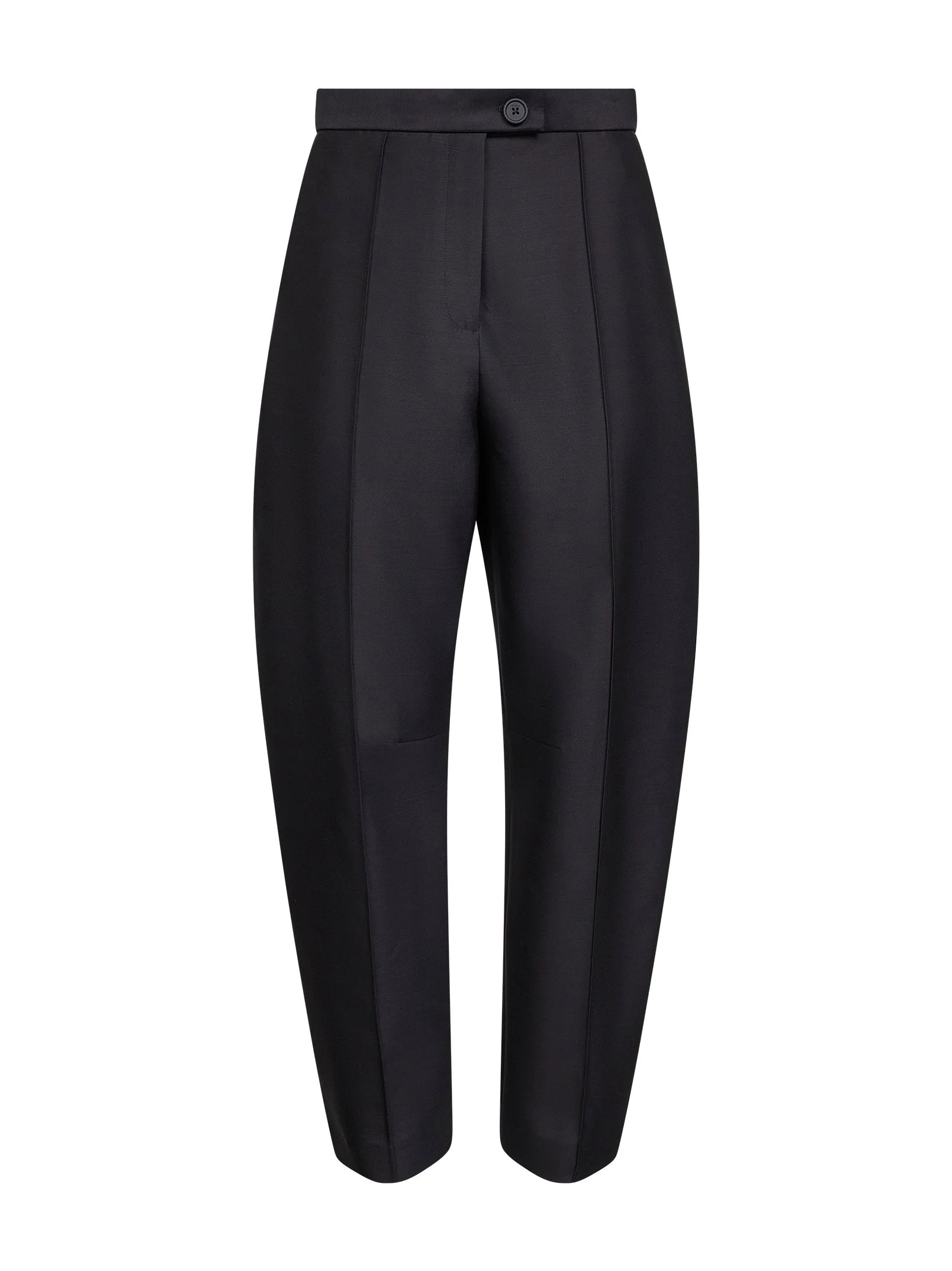 - Front zip-fly closure; extended waistband tab with button closure - Waist with belt loops - Side pockets, back buttoned welt pocket - Stitched forward pleats at legs - Tapered slightly curved leg - Regular fit - Black color - 71% virgin wool, 29% silk - Made in extra eu Wool or fine animal hair: Virgin Wool71 % Natural (Other): Silk29 % Made in: Stati Uniti Season: P26 3183577-200