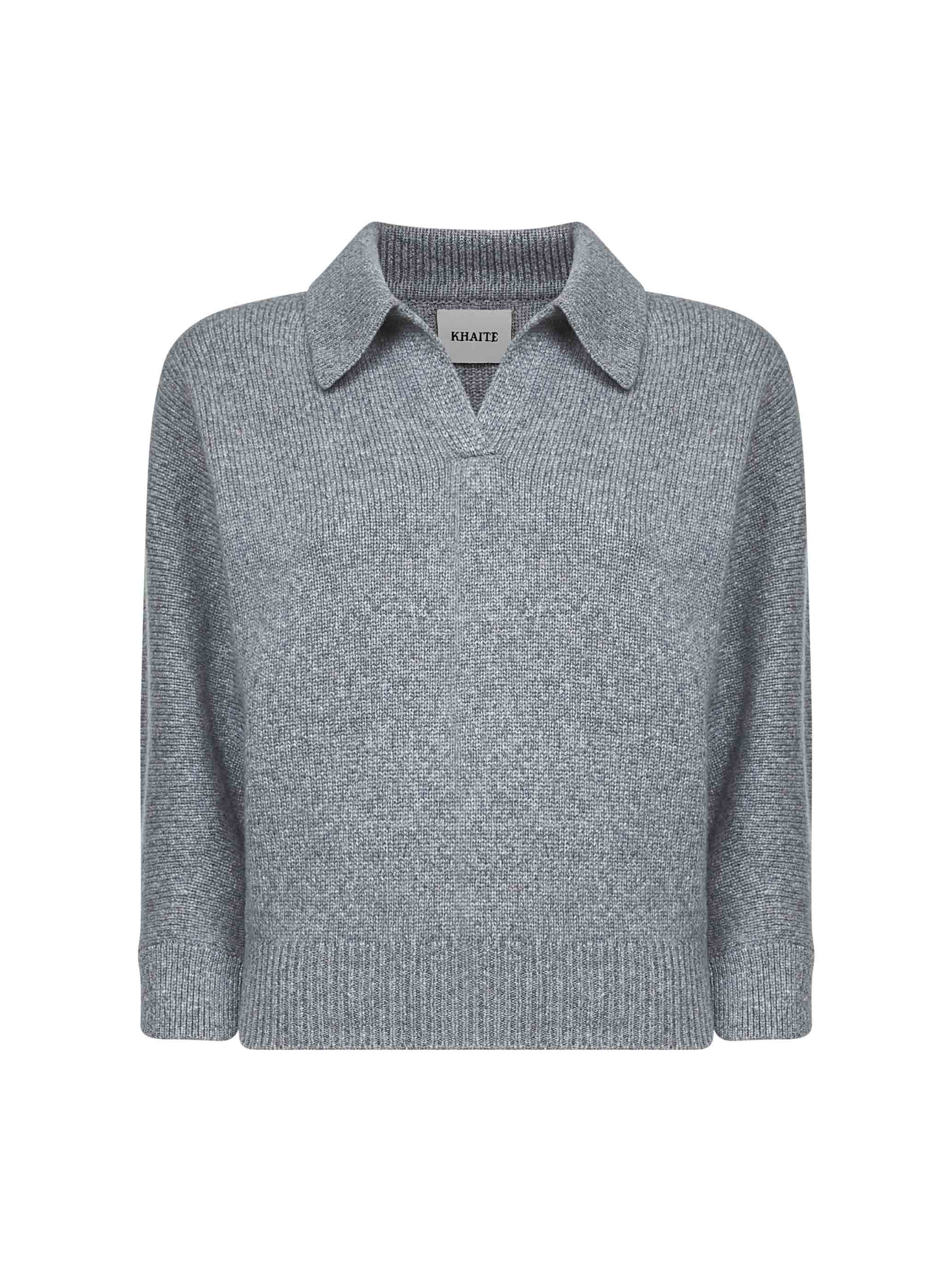 Grey cashmere knit Herve polo shirt