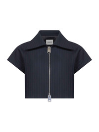 - Front metal double-slider zip closure - Wide collar - Cap sleeves - Back yoke - Lined - Cropped cut - Regular fit - Blue color - 96% virgin wool, 2% elastane, 2% cotton - Made in extra eu Synthetic: Polyester100 % Made in: Stati Uniti Season: P26 2553562-308