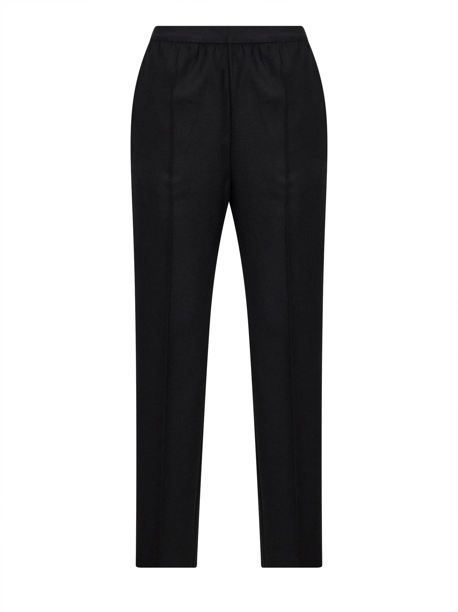 - Elasticated waistband - Side pockets - Four stitches at back - Pressed legs creases - Straight leg - Black color - 100% virgin wool - Made in italy Wool or fine animal hair: Virgin Wool100 % Made in: ITALIA Season: P26 S51KA0616S47782900