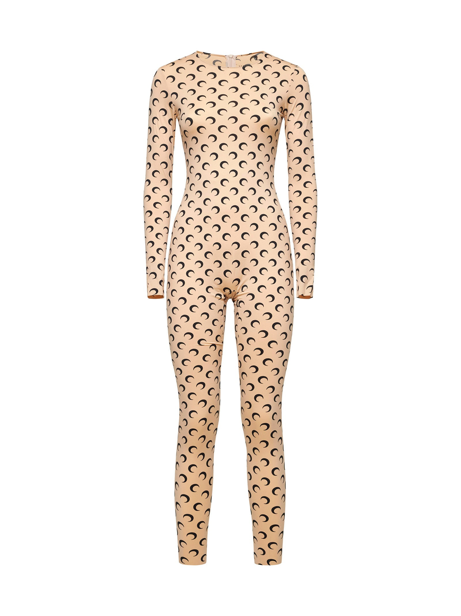 •Back invisible zip closure •Crewneck •Long sleeves •Raw cut cuffs and legs bottom •All-over contrasting Moon print •Second skin recycled jersey •Beige color •88% Polyamide, 12% Elastane •Made in Portugal Size and fit: Model is 173 cm tall and wears size S Country of manifacture: Portogallo ID designer: WJS002ACJER0001TA10
