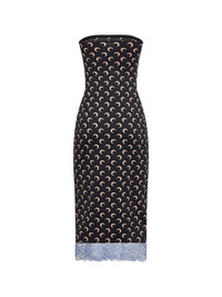 - Strapless neckline; elastic band with anti-slip tape at inner side - Contrasting scalloped elastic lace hem - All-over contrasting moon print - Midi length - Second-skin fit - Black color - 88% polyamide, 12% elastane - Made in portugal Synthetic: Polyamide88 % Synthetic: Elastane12 % Made in: Portugal Season: A25 WDR333ACJER0001IT99