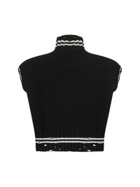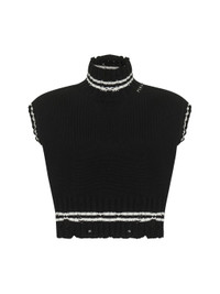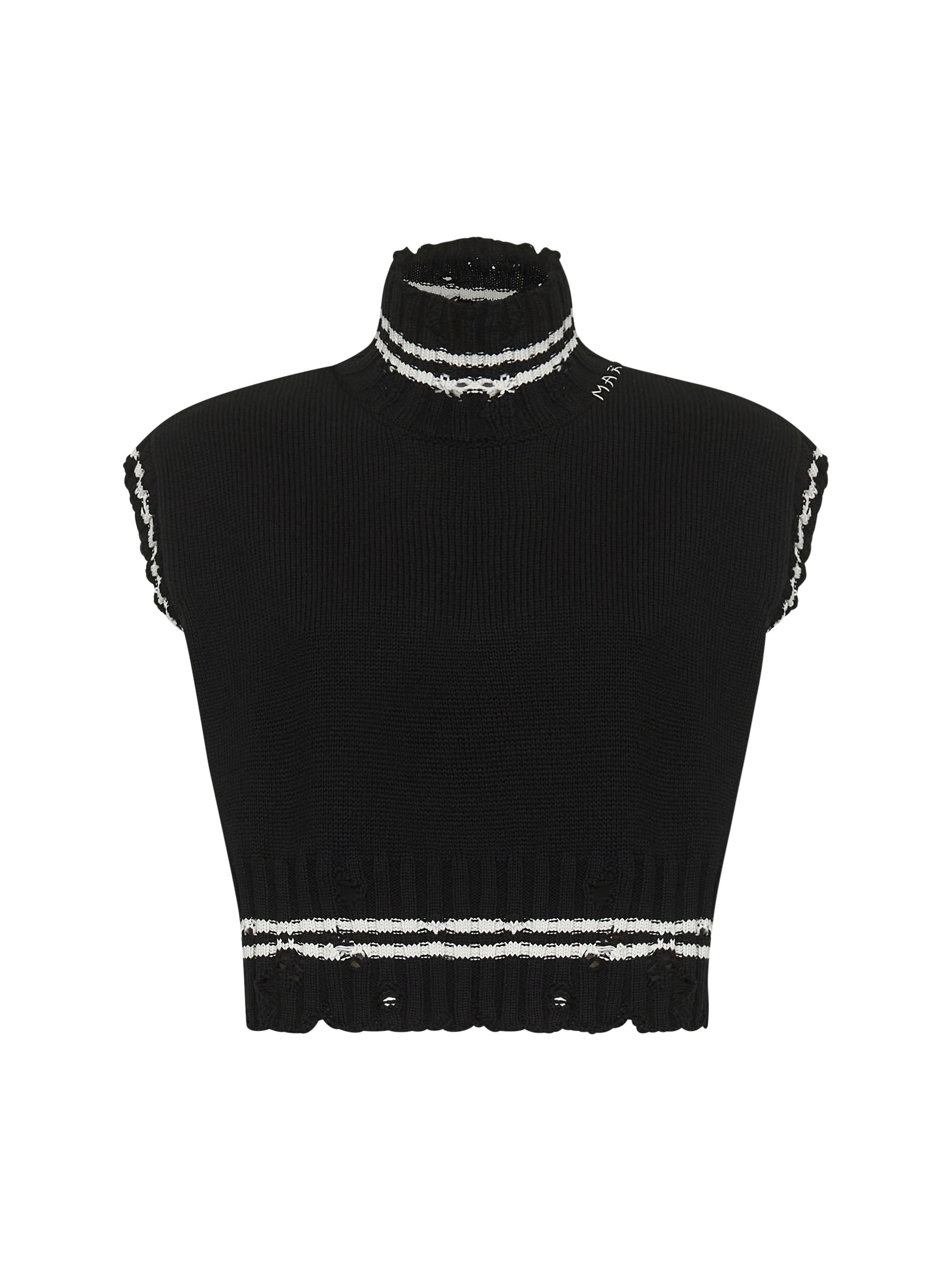 - Ribbed high collar with contrasting striped pattern; contrasting hand-stitched marni symbol embroidery at neckline - Sleeveless - Ribbed armholes and bottom band with contrasting striped pattern - Nibbled edges and punctured holes at trims - Slightly cropped length - Boxy fit - Black color - 100% cotton - Made in italy Natural (Veg): Cotton100 % Made in: ITALIA Season: A25 DVMD0140Q0UFC652V2N99