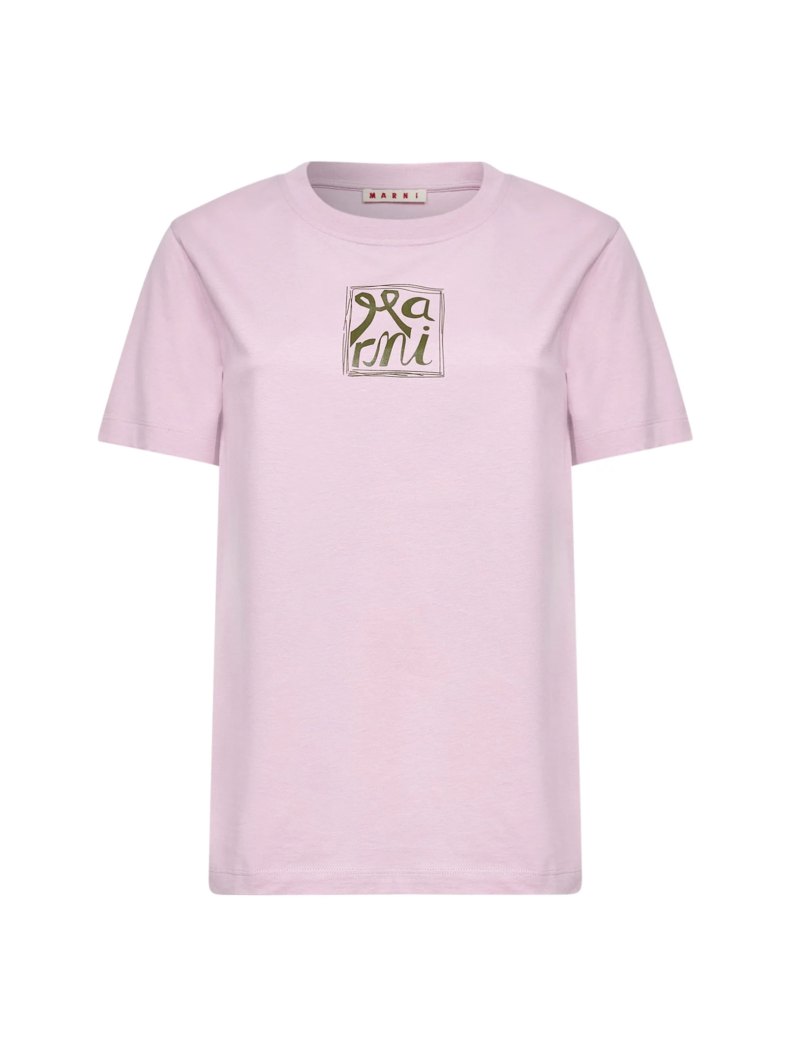 - Ribbed crewneck - Short sleeves - Contrasting marni frame logo printed at front - Straight hem - Regular fit - Quartz color - 100% cotton - Made in italy Natural (Veg): Cotton100 % Made in: ITALIA Season: P26 THJE0293PCUSCY88LOC20