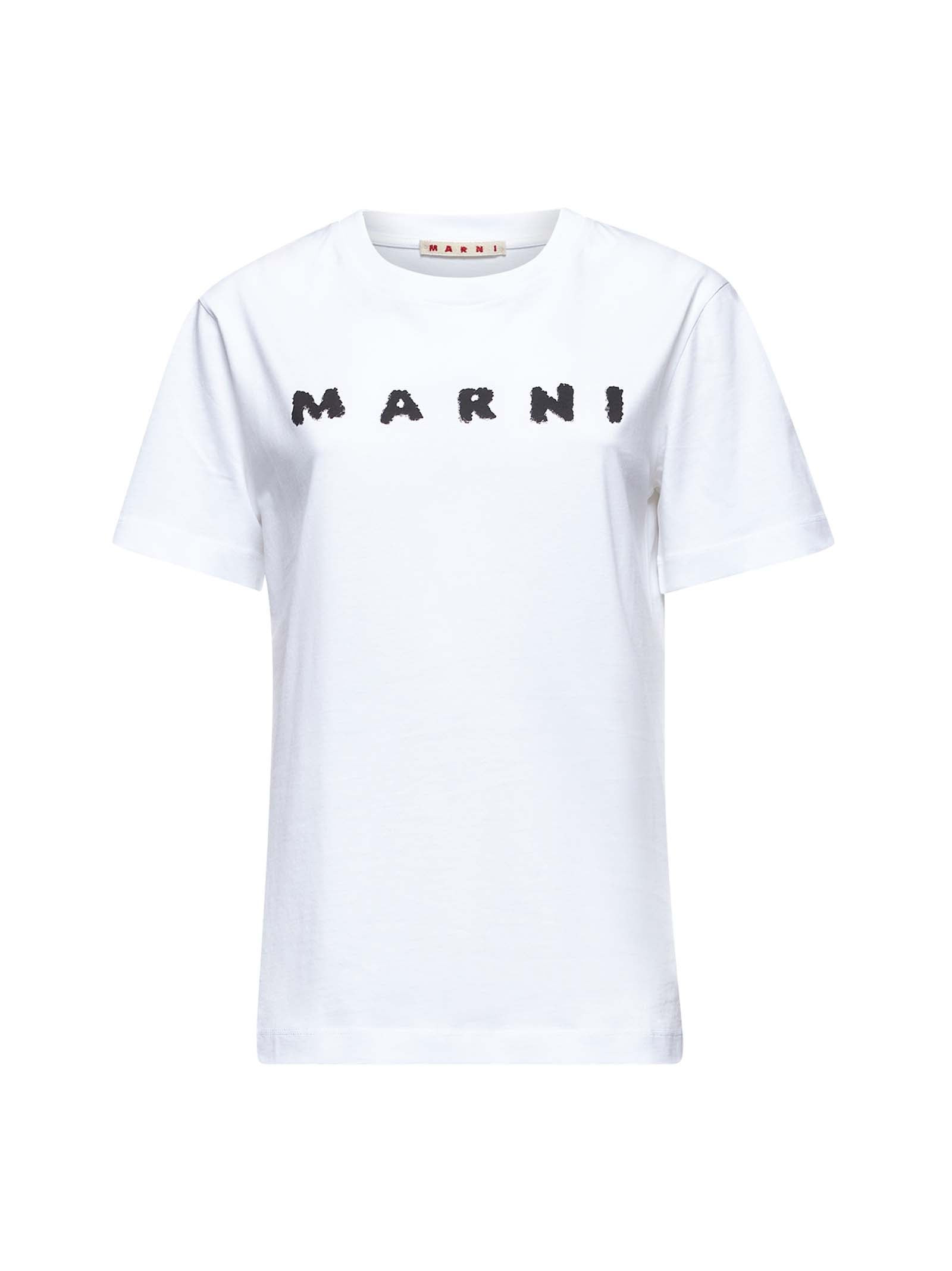 WHITE JERSEY T-SHIRT WITH MARNI SCRIBBLED LOGO