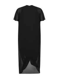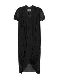 - V-neckline - Short sleeves; draped detailing at shoulders - White stitch line at back - Draped front; gathered detailing at bottom - Asymmetric hemline - Partially lined - Midi length - Black color - 100% polyester - Made in italy Synthetic: Polyester100 % Made in: ITALIA Season: P26 S52DG0034M35468900