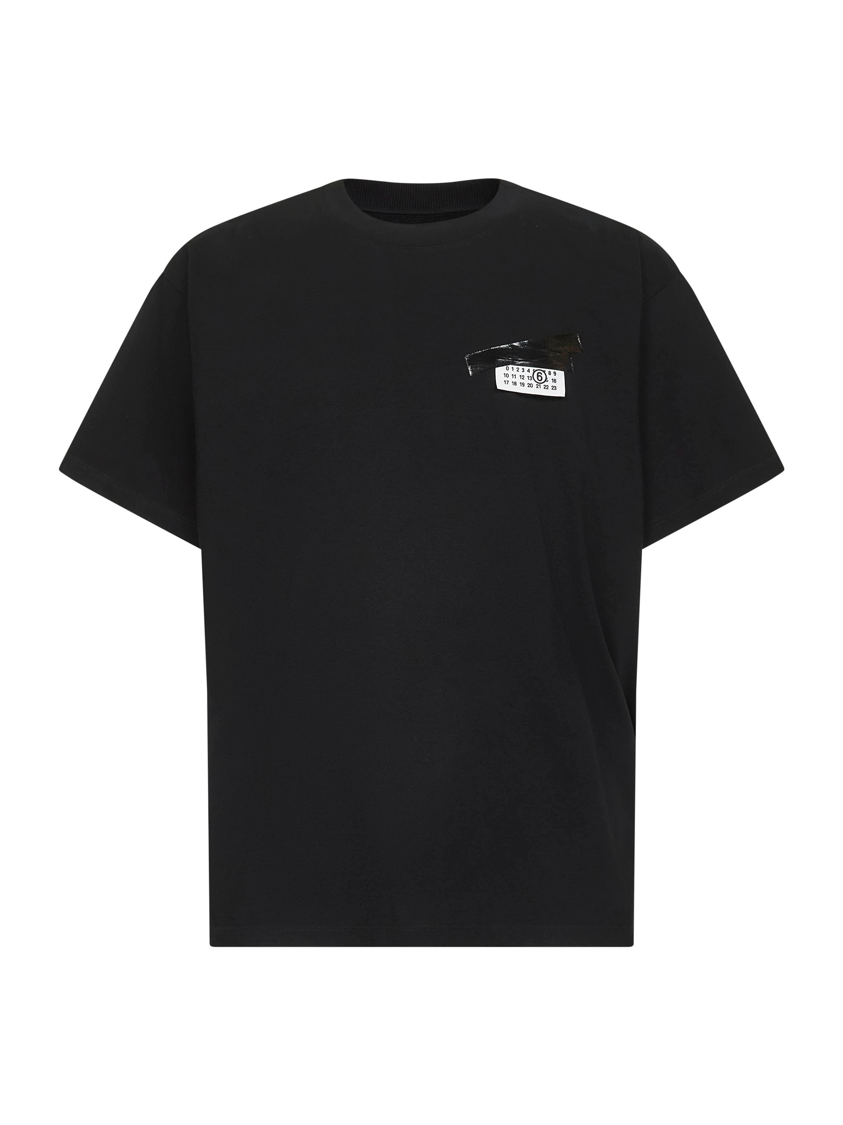 - Ribbed crewneck - Short sleeves, soft shoulders - Trompe l'oeil printed tape and label artwork at chest - White stitch line at back - Classic fit - Black color - 100% cotton - Made in italy Natural (Veg): Cotton100 % Made in: Italy Season: A25 SH2GC0030M20048900