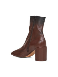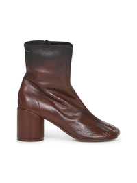 - Zip fastening at inner leg - Anatomic mm6 toe - Two-tone gradient ombre-effect leather upper - White stitch line at back - Thick leather-covered rounded cylindrical heel - Leather lining and insole - Leather sole - Heel height: 80mm - Brown color - 100% ovine leather - Made in italy Furs & Skins: Ovine Leather (top grain)100 % Made in: Italy Season: A25 S66WU0131P7439HB099