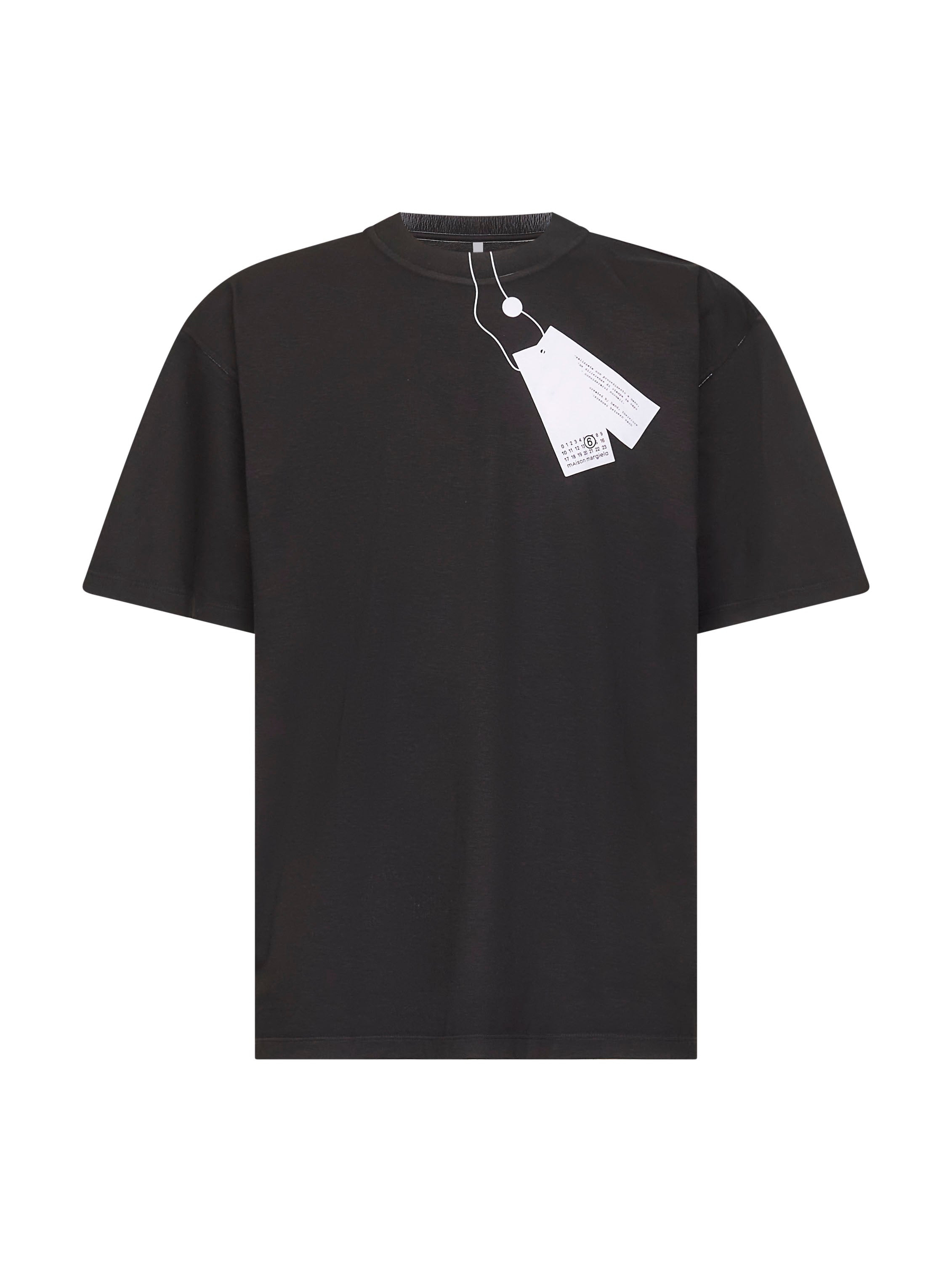 - Ribbed crewneck - Short sleeves, dropped shoulders - Trompe l'oeil tag attached with string print at front; white stitch line at back - White back; contrasting front - Relaxed fit - White color - 100% cotton - Made in italy Natural (Veg): Cotton100 % Made in: ITALIA Season: A25 SH2GC0029M20048100