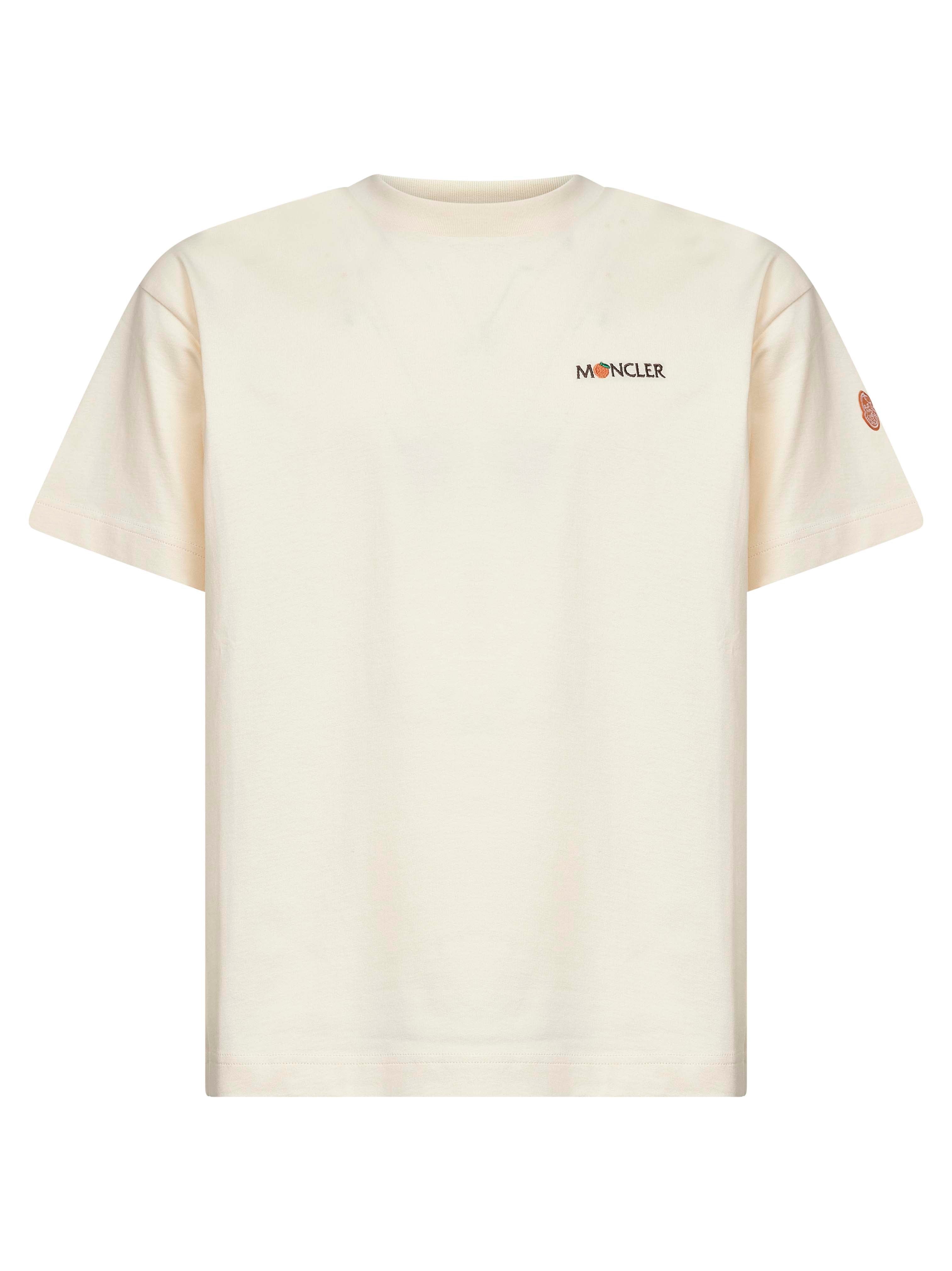 - Ribbed crewneck - Short sleeves, soft shoulders - Contrasting embroidered logo at chest; logo patch at left sleeve - Cotton jersey design - Moncler x gilga farm designed by donald glover collaboration; moncler genius collection - Regular fit - White color - 100% cotton - Made in extra eu Natural (Veg): Cotton100 % Made in: Turchia Season: A25 K24028C0000589AZ902B