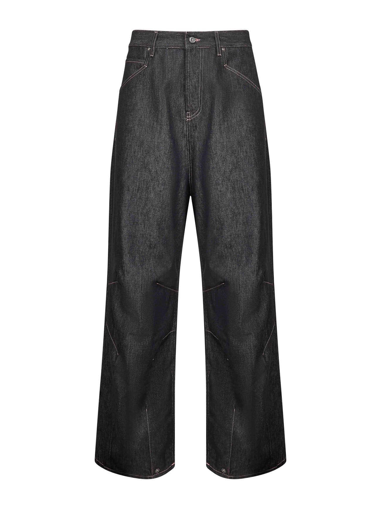 - Covered front closure, metal logo button - Waist with belt loops - Five-pocket model; contrasting back pocket - Logo patch at back waistband - Multicolor digital prints at back - Adjustable snap-buttoned hems - Contrasting topstitching - Oversized/extra wide fit - Blue color - 100% cotton - Made in italy Natural (Veg): Cotton100 % Made in: ITALIA Season: A25 DFM03020DF186NOWAS