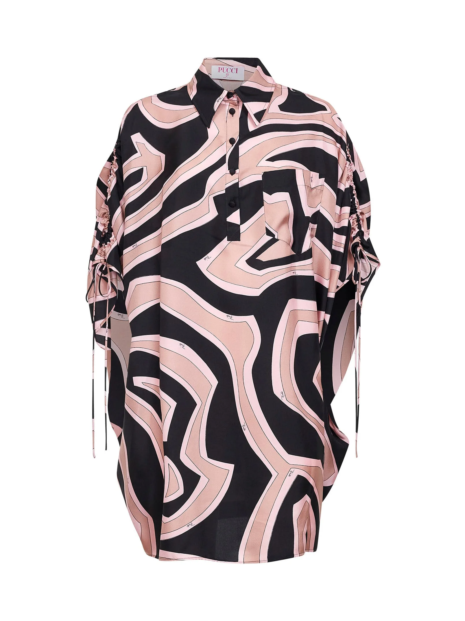 - Front partial fabric-covered button placket - Pointed collar - Asymmetric kimono sleeves with adjustable drawstrings; gathered detailing at sleeves - Soft draping at sides - Patch pocket at chest - All-over multicolor labirinto print - Cocoon fit - Color: black/pink - 100% silk - Made in italy Natural (Other): Silk100 % Made in: ITALIA Season: P26 6HRL116H741031