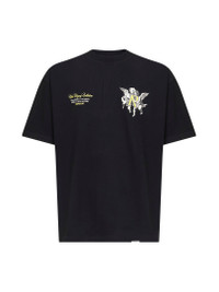 - Ribbed crewneck - Short sleeves, dropped shoulders - High-build screen-printed cherubs graphic with represent lettering at chest and back; contrasting lettering print at chest - Metal represent bar at front hem - 220gsm cotton design with soft carbon finish - Oversized fit - Black color - 100% cotton - Made in portugal Natural (Veg): Cotton100 % Made in: Portogallo Season: A25 MLM100369-01