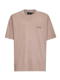 - Ribbed crewneck - Short sleeves, dropped shoulders - Owners' club lettering at chest and back - Metal represent plate at hem - Midweight cotton jersey design; pigment wash - Slightly oversized fit - Dusty mauve color - 100% cotton - Made in portugal Natural (Veg): Cotton100 % Made in: Portogallo Season: A25 OCM41114-322
