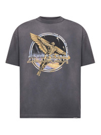 - Ribbed crewneck - Short sleeves, dropped shoulders - Printed artwork with logo at front; contrasting lettering print at back - Metal logo bar at front hem - Sun fade wash finish - Oversized fit - Grey color - 100% cotton - Made in portugal Natural (Veg): Cotton100 % Made in: Portogallo Season: P26 MLM100823-46
