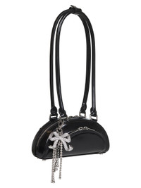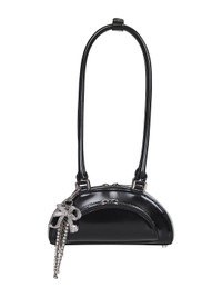 Black Leather Mini Shoulder Bag With Charm
