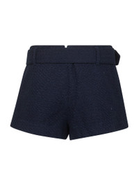 - Invisible back zip closure - Matching adjustable and detachable oversized belt at the waist; belt loops - Front welt pockets with gold embossed buttons and contrasting trim - Twisted trimming detail - Built-in shorts - Fitted fit - Blue color - 50% polyester, 26% acrylic, 24% wool - Made in extra eu Synthetic: Polyester film fiber50 % Synthetic: Acrylic26 % Wool or fine animal hair: Wool24 % Made in: Repubblica Popolare Cinese Season: A25 PF25034PBL-BLUE