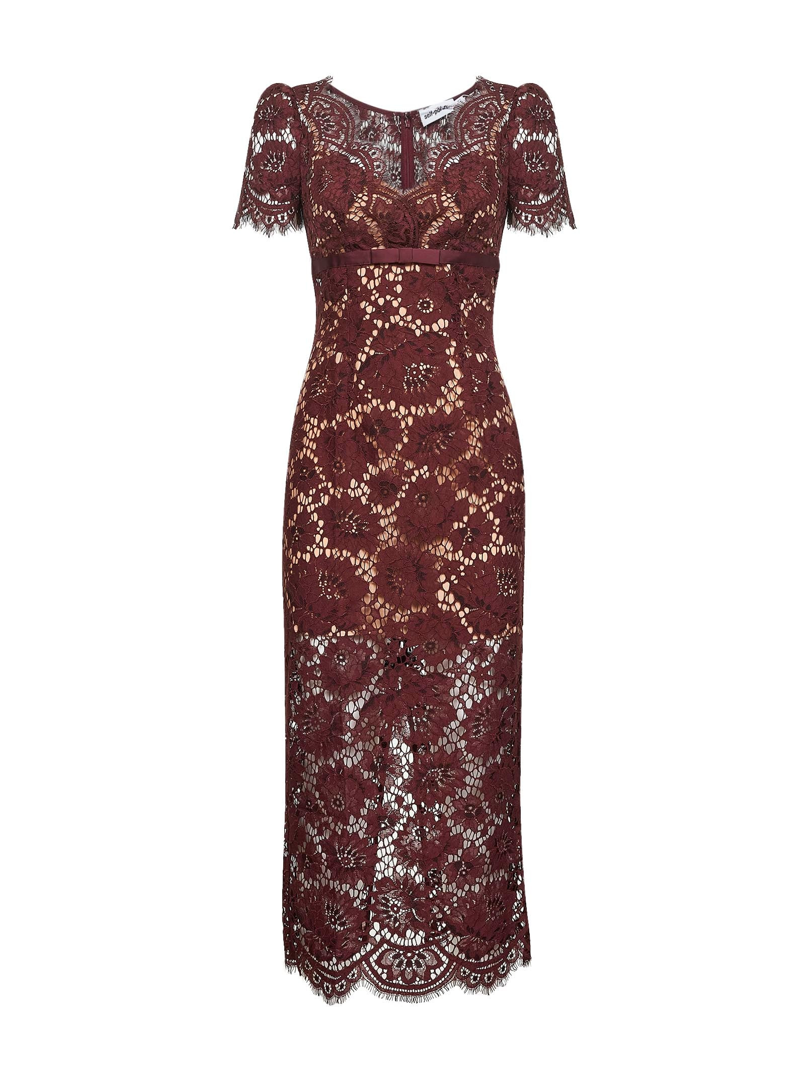 Burgundy floral lace midi dress