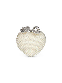- Crystal-embellished metal bow clasp fastening - Detachable metal chain shoulder strap - Interior: one main compartment; satin interior - Silver-toned metal hardware - White satin heart-shaped design with all-over pearls embellishment at front; metal frame - 18 x 14 x 6 cm; shoulder strap drop: 50 cm - Cream color - 96% polyester, 4% elastane - Made in extra eu Synthetic: Polyester96 % Synthetic: Elastane4 % Made in: Repubblica Popolare Cinese Season: A25 AW25307C-CREAM