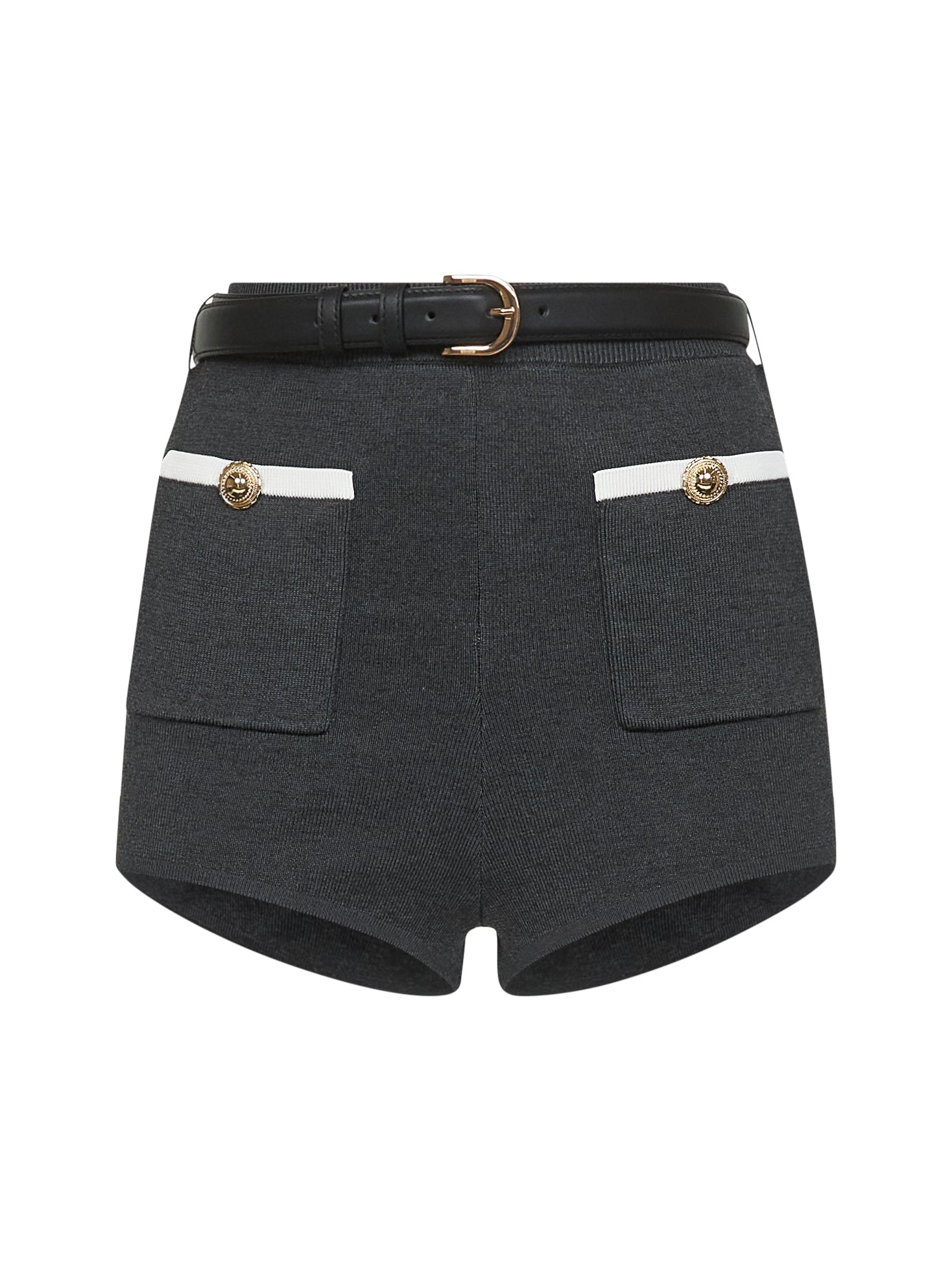 - Elasticated ribbed waistband; adjustable and detachable belt at the waist with metal buckle - Front patch pockets with gold embossed button and contrasting trim - Regular fit - Grey color - 67% viscose, 33% polyester - Made in extra eu Synthetic: viscose67 % Synthetic: Polyester film fiber33 % Made in: Repubblica Popolare Cinese Season: A25 PF25046PGR-GREY