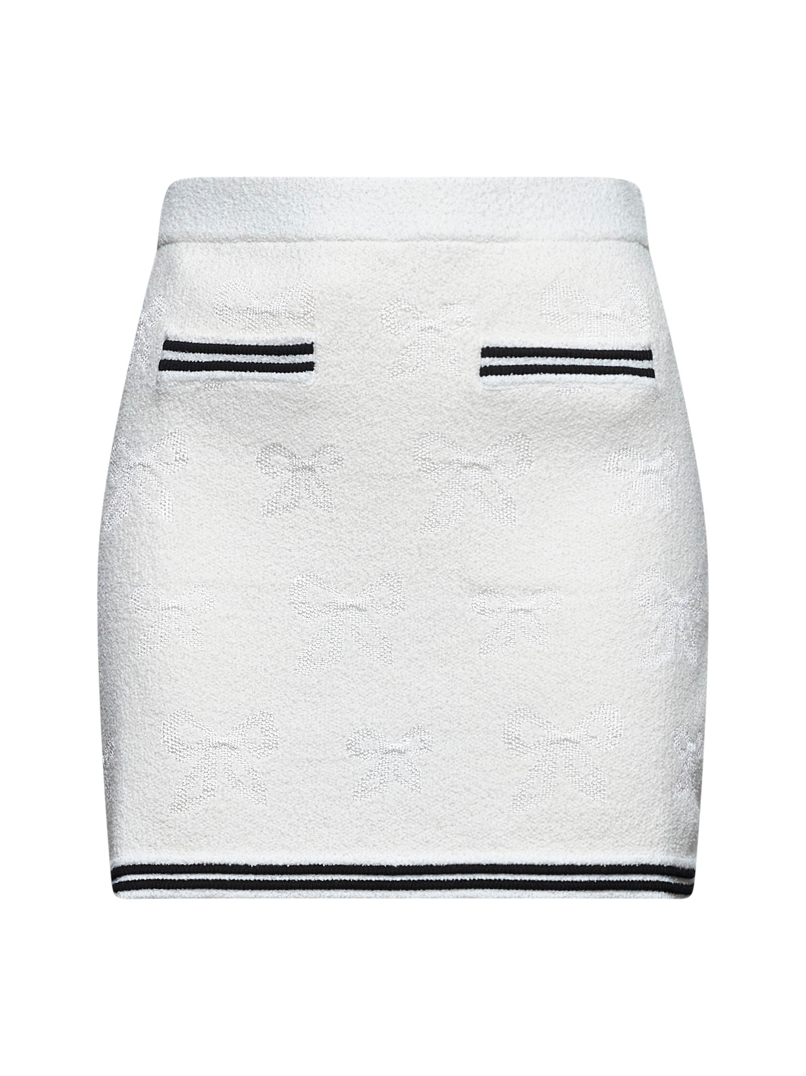 Ivory bow jacquard knit mini skirt