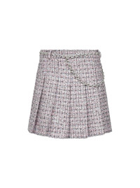 - Invisible side zip closure - Waist with belt loops; adjustable and detachable crystal-embellished metal chain belt at the waist - Pleated model - Fitted fit - Pink color - 85% polyester, 10% wool, 5% viscose - Made in extra eu Wool or fine animal hair: Wool10 % Synthetic: Polyester85 % Synthetic: viscose5 % Made in: Repubblica Popolare Cinese Season: A25 AW25048SKAP-PINK