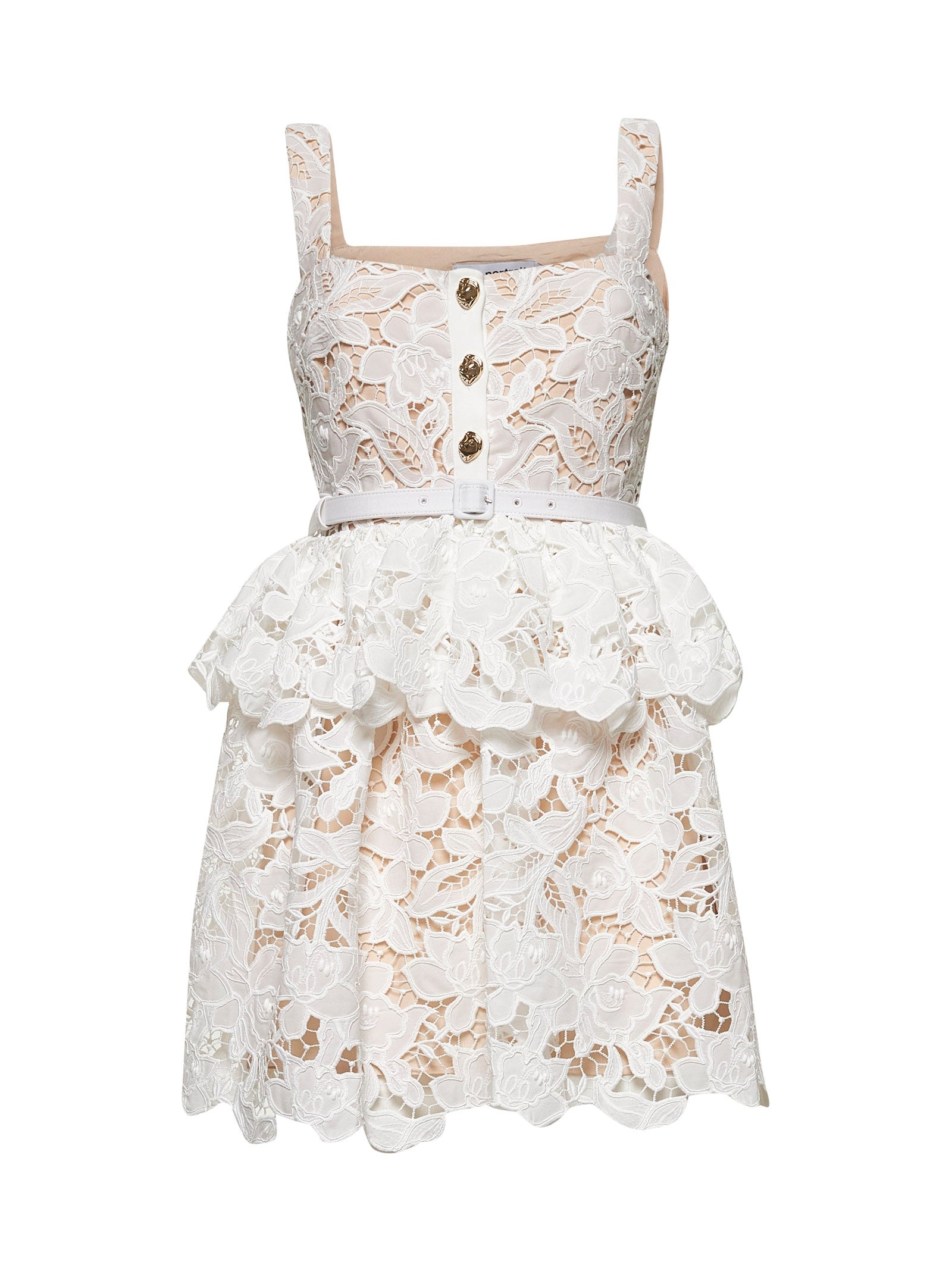 White lace tiered mini dress