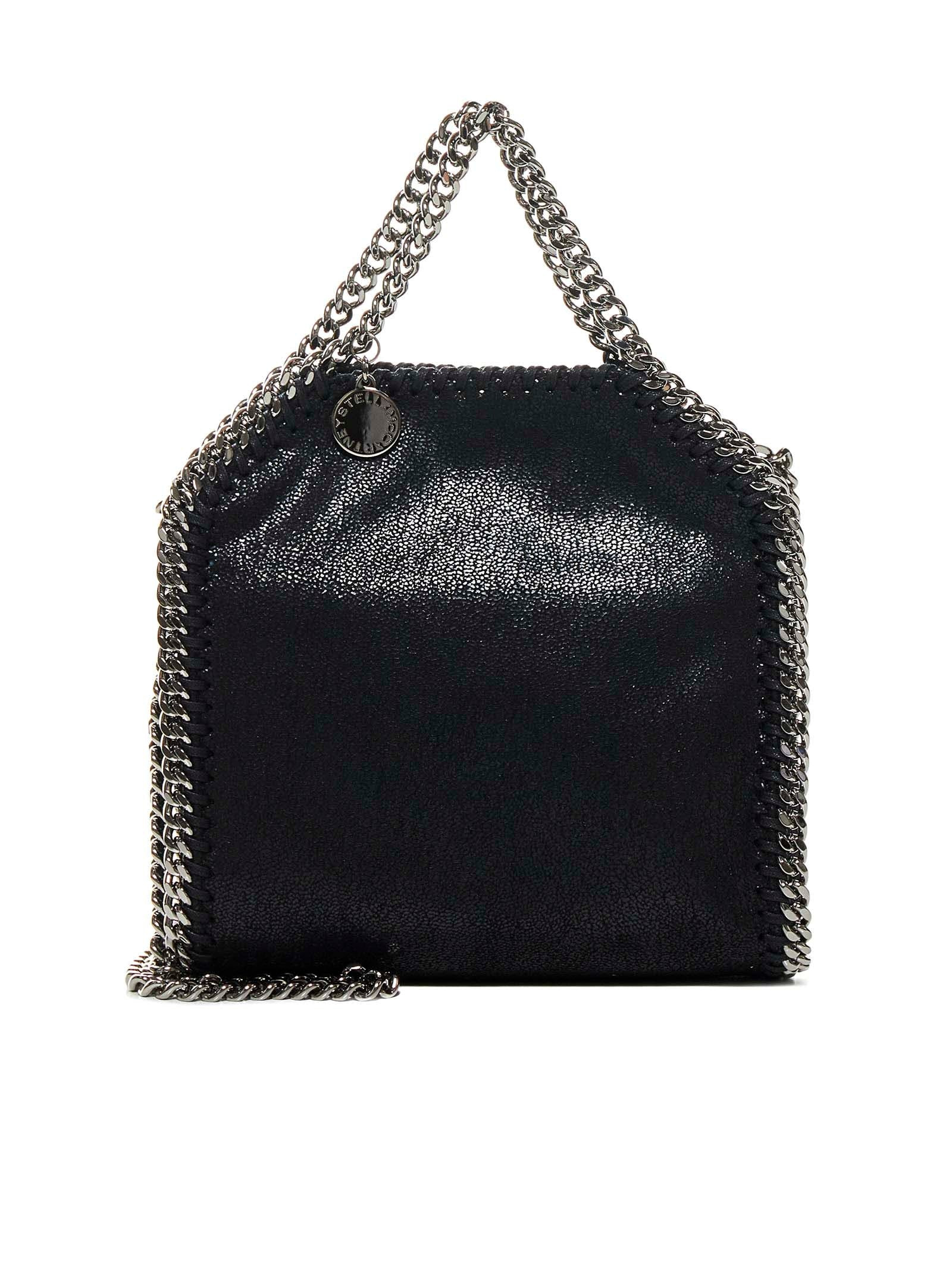 Eco-friendly and iconic, Stella McCartney’s mini version of Falabella tote bag is decidedly versatile. Made from black Shaggy Deer, the brand's sustainable alternative material to suede, it features the signature silver-tone mental edges and double handles, round charm with logo, concealed magnetic fastening, all-over logo fabric lining and an internal zip pocket. Color: Black Size and fit: 18 x 17 x 6 cm Strap: 110 cm Composition: 100% polyester Country of manifacture: Italy ID designer: 391698W91321000