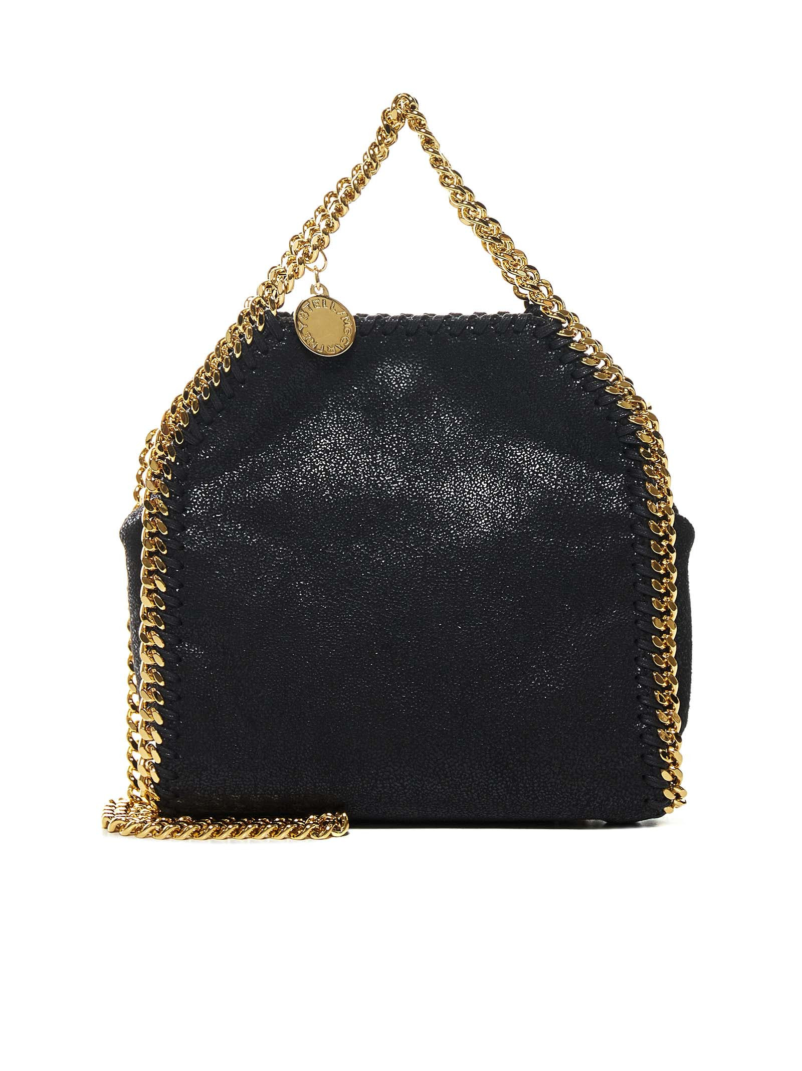 Stella McCartney’s Falabella tiny tote bag in black shaggy deer featuring chain double handles, shoulder strap and edges, round logo charm, magnetic button fastening, fabric lining with logo motif, inner pocket and gold-tone metal hardware. Color: black Size and fit: 19 x 18 x 7 cm Strap: 105 cm Composition: 100% polyester Country of manifacture: Italy ID designer: 391698W93551000