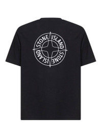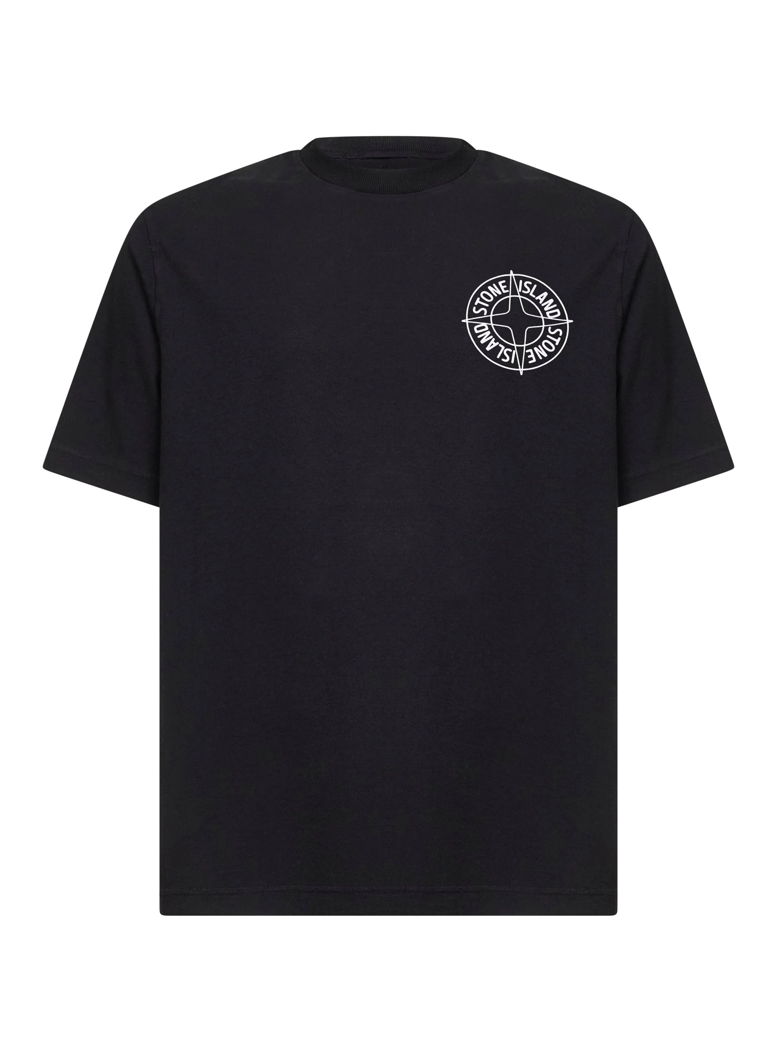 - Ribbed crewneck - Short sleeves - Stylized embossed compass logo print at chest; maxi stylized embossed compass logo print at back - Organic cotton jersey design; garment-dyed model - Regular fit - Black color - 100% cotton - Made in extra eu Natural (Veg): Cotton100 % Made in: Tunisia Season: P26 L1S152100001S0284V0029