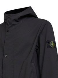 - Front double-slider zip closure on tape under snap button placket - Hood with inner adjustable drawstring - Long sleeves; stone island badge at left sleeve - Slanted side pockets with hidden zip closure - Back yoke - Ribbed knit cuffs and bottom band - Three-ply performance material design with an 8000 mm water column, laminated to a breathable, water- and wind-resistant inner membrane - Black color - 92% polyester, 8% elastane - Made in extra eu Synthetic: Polyester92 % Synthetic: Elastane8 % Made in: Indonesia Season: P26 L1S154100118S0A22V0029
