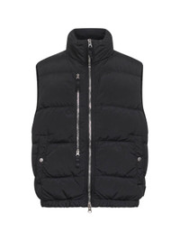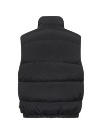 - Front double-slider zip closure - Padded stand collar - Sleeveless; elasticated insert at armholes - Slanted side pockets with snap-buttoned flap, front double-slider vertical zip pocket that opens to a two-compartments pocket, inner pocket - Stone island badgeat left side - Elasticated hem - Lined; padded - responsible down standard (rds) certification - Garment dyed with a special anti-drop agent - Black color - 100% polyamide - Made in romania Synthetic: Microfibre Polyamide100 % Made in: Romania Season: A25 K2S15G100006S0019V0029