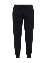 - Front zip-fly closure - Ribbed elasticated waistband with adjustable drawstring - Vertical side pockets, back pocket with hidden snap button closure, patch pocket at left leg with hidden zip closure and stone island badge - Ribbed elasticated legs bottom - Overlock stitching at inner leg - Garment-dyed model - Slim fit - Black color - 100% cotton - Made in extra eu Natural (Veg): Cotton100 % Made in: Tunisia Season: P26 L1S156200010S0051V0029