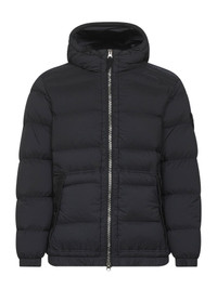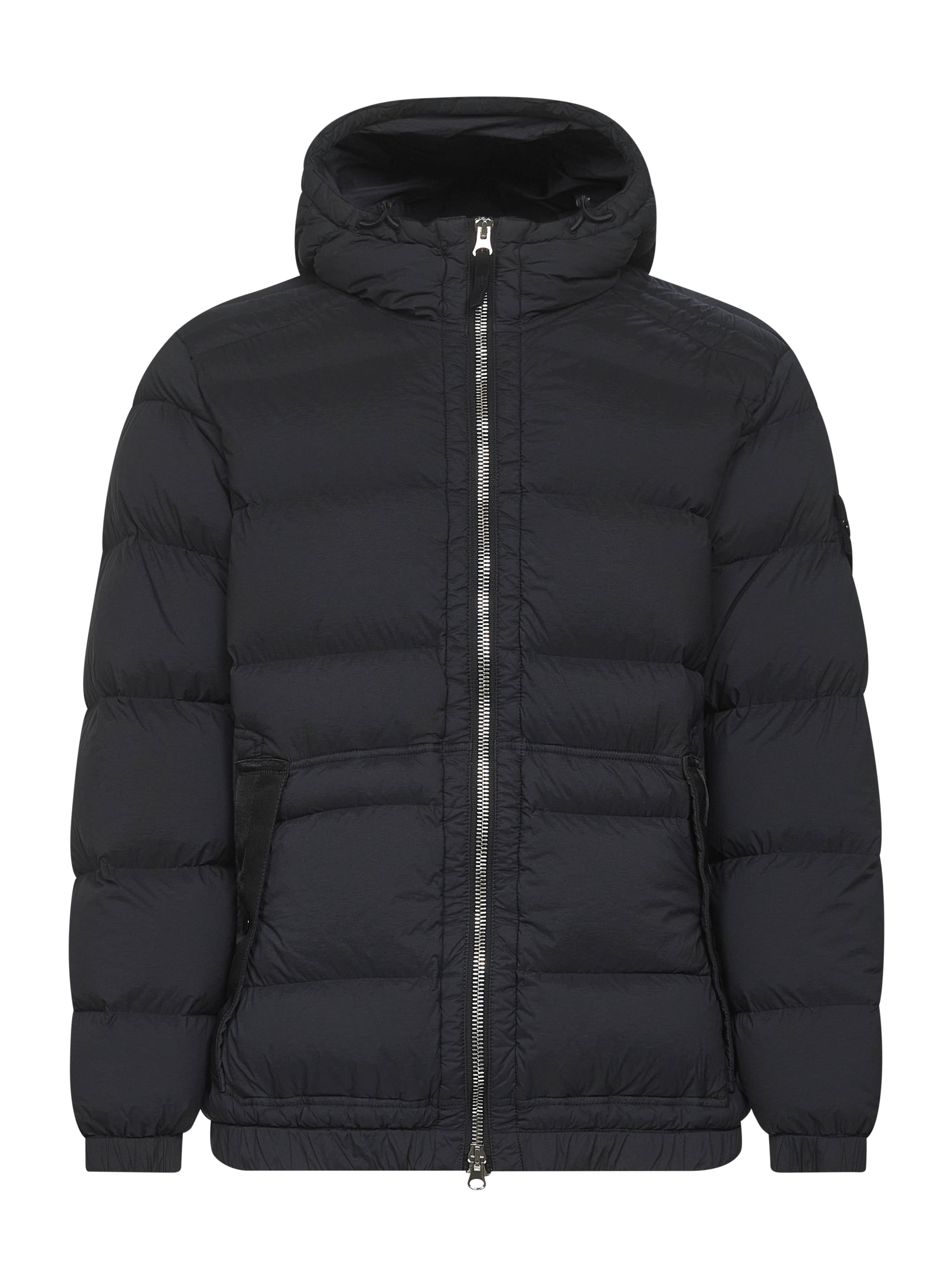 - Front double-slider zip closure - Padded hood with adjustable horizontal drawstring - Long sleeves; stone island badge at left sleeve - Vertical side pockets with snap-buttoned fixed flap with contrasting herringbone pattern tape - Elasticated cuffs and hem - Lined; padded with direct injection - rds responsible down standard certified - Garment dyed with the addition of a special anti-drop agent - Black color - 84% polyamide, 16% elastane - Made in extra eu Synthetic: Microfibre Polyamide84 % Synthetic: Elastane16 % Made in: Vietnam Season: A25 K2S154100040S0028V0029