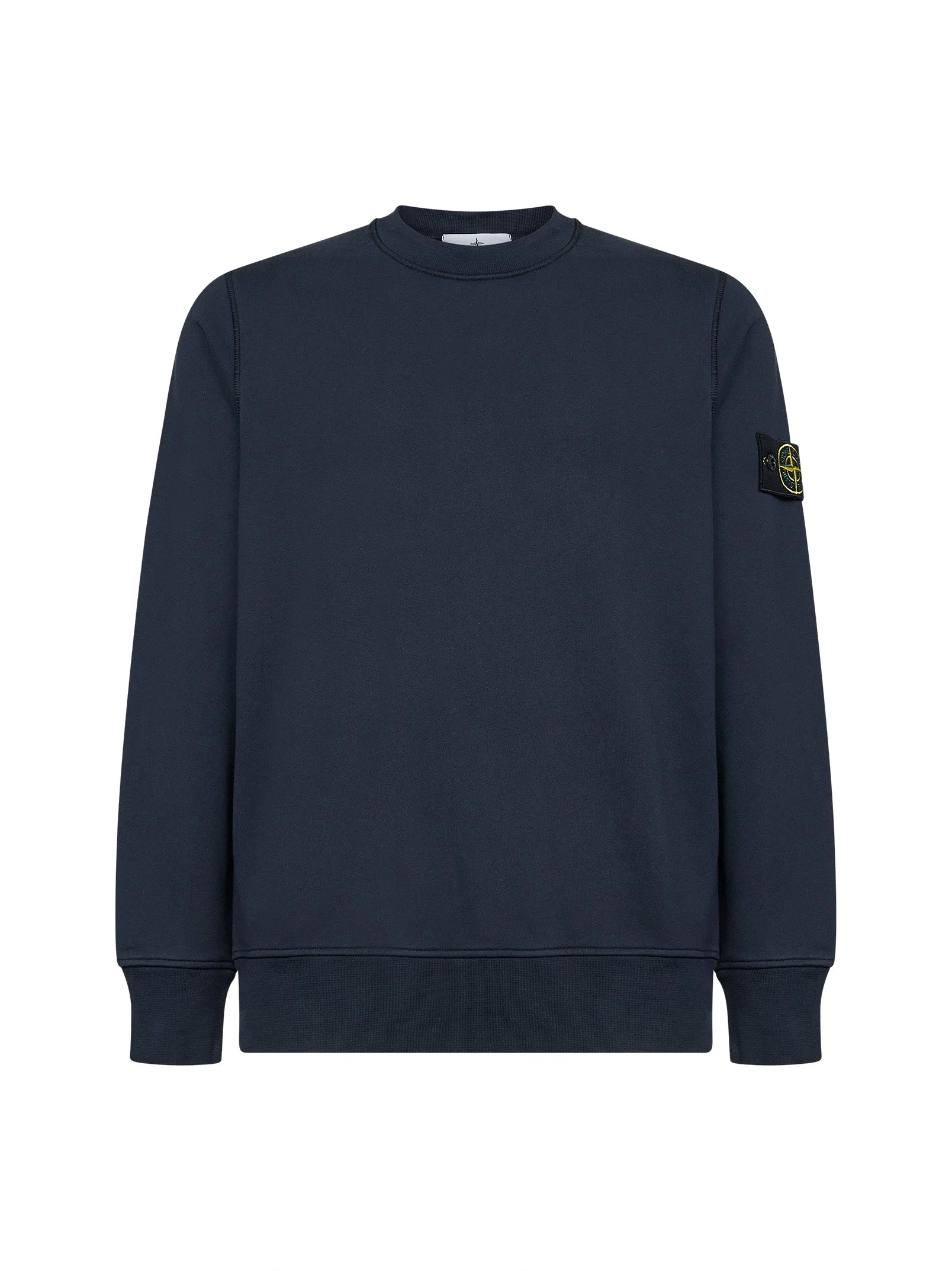 - Ribbed crewneck; lunette under back neckline with inner reinforcement - Long sleeves, raglan sleeves at back - Stone island badge at left sleeve - Ribbed cuffs and bottom band - Overlock stitching at seams - Brushed inner side - Medium weight; garment-dyed model - Regular fit - Blue color - 100% cotton - Made in romania Natural (Veg): Cotton100 % Made in: MOLDAVIA Season: P26 L1S156100060S0051V0020