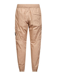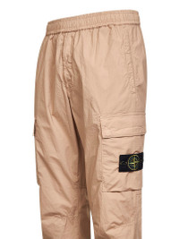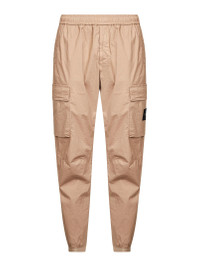 - Front zip-fly closure - Elasticated waistband with adjustable inner drawstring - Vertical side pockets with hidden zip closure, back pockets with fixed flap and hidden snap button closure, bellows cargo pockets with flap and double hidden snap button closure at legs - Stone island badge at left cargo pocket - Shaped knees - Elasticated waistband - Lightweight stretch cotton canvas design; garment-dyed model - Regular tapered fit - Desert color - 97% cotton, 3% elastane - Made in extra eu Natural (Veg): Cotton97 % Synthetic: Elastane3 % Made in: KOREA SUD Season: P26 L1S153100031S0003V009A