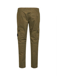 - Front zip-fly closure, metal logo button - Waist with belt loops - Side standing pockets with hidden zip closure, back slit pocket with hidden snap button closure, bellows patch pockets at legs with snap-buttoned flap; stone island badge at left pocket - Garment dyed model with "old" treatment - Slim fit - Military green color - 100% cotton - Made in romania Natural (Veg): Cotton100 % Made in: Romania Season: P26 L1S153100053S00WAV015G