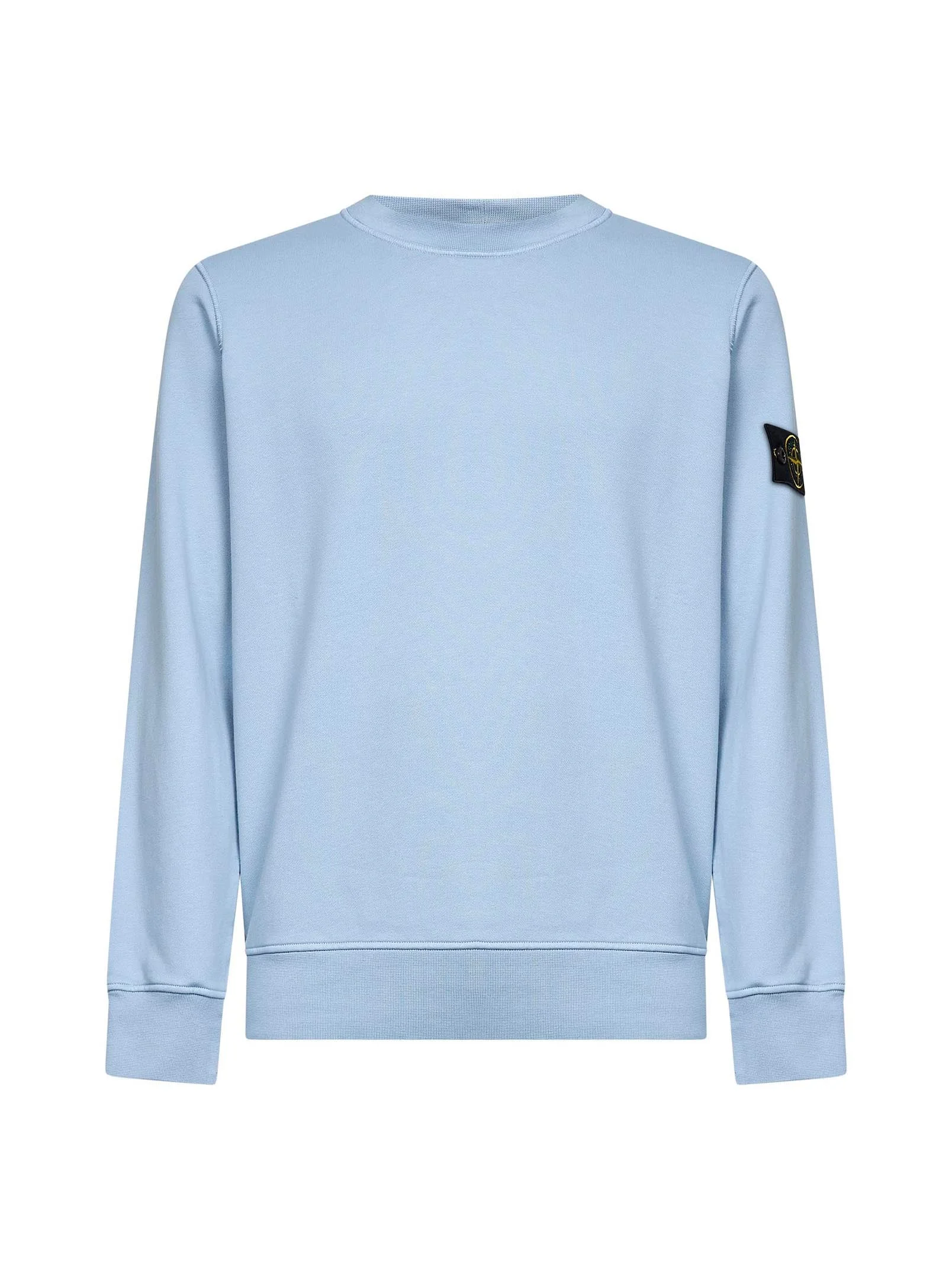 - Ribbed crewneck; lunette under back neckline with inner reinforcement - Long sleeves, raglan sleeves at back; stone island badge at left sleeve - Ribbed cuffs and bottom band - Overlock stitching at seams - Midweight organic cotton fleece design with brushed inner side; garment-dyed model - Regular fit - Powder blue color - 100% cotton - Made in moldova Natural (Veg): Cotton100 % Made in: MOLDAVIA Season: P26 L1S156100060S0051V004A