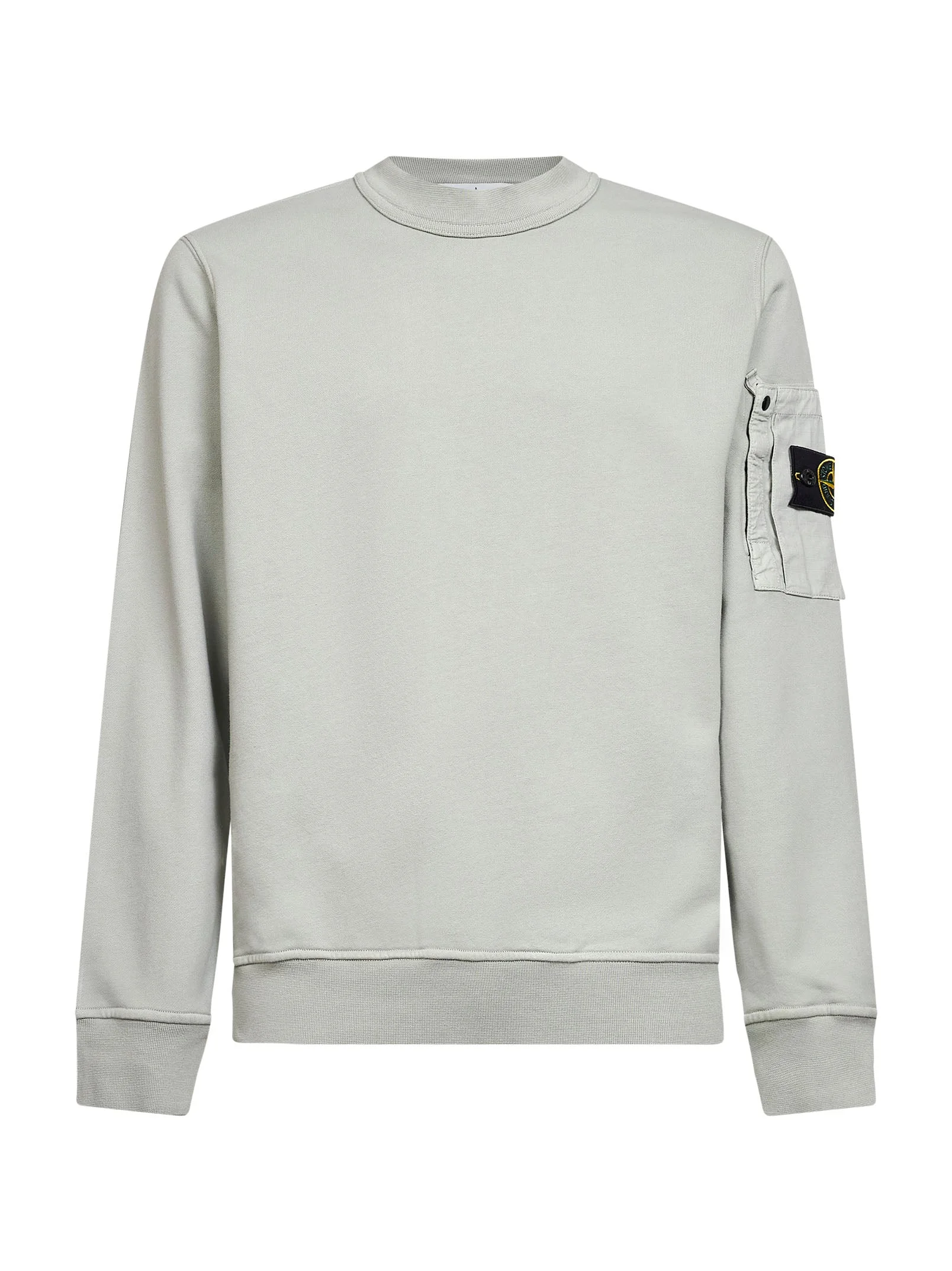 - Ribbed crewneck - Long sleeves; ripstop cotton patch pocket at left sleeve with hook-and-loop fastening along top and side, snap button and loop at corner, pleat detail, and stone island badge - Elasticated ribbed cuffs and bottom band - Midweight cotton design; garment-dyed model - Regular fit - Sage green color - 100% cotton - Made in extra eu Natural (Veg): Cotton100 % Made in: Tunisia Season: P26 L1S156100019S0410V0055