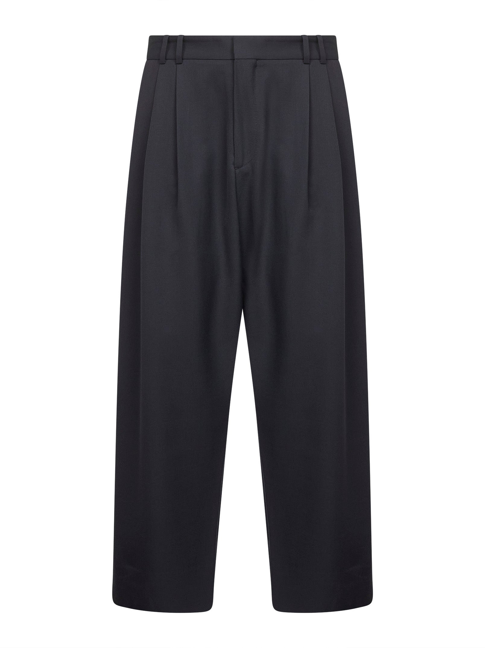 - Covered front closure - Mid-rise waist with belt loops; drop crotch - Side pockets, back welt pockets - Deep double front pleat - Volume leg - Slouchy fit - Grey color - 55% polyester, 45% virgin wool - Made in portugal Synthetic: Polyester55 % Wool or fine animal hair: Virgin Wool45 % Made in: Portogallo Season: A25 LINESNMLIGHTTECHWOOLPEWTER