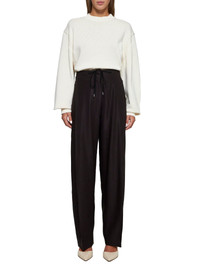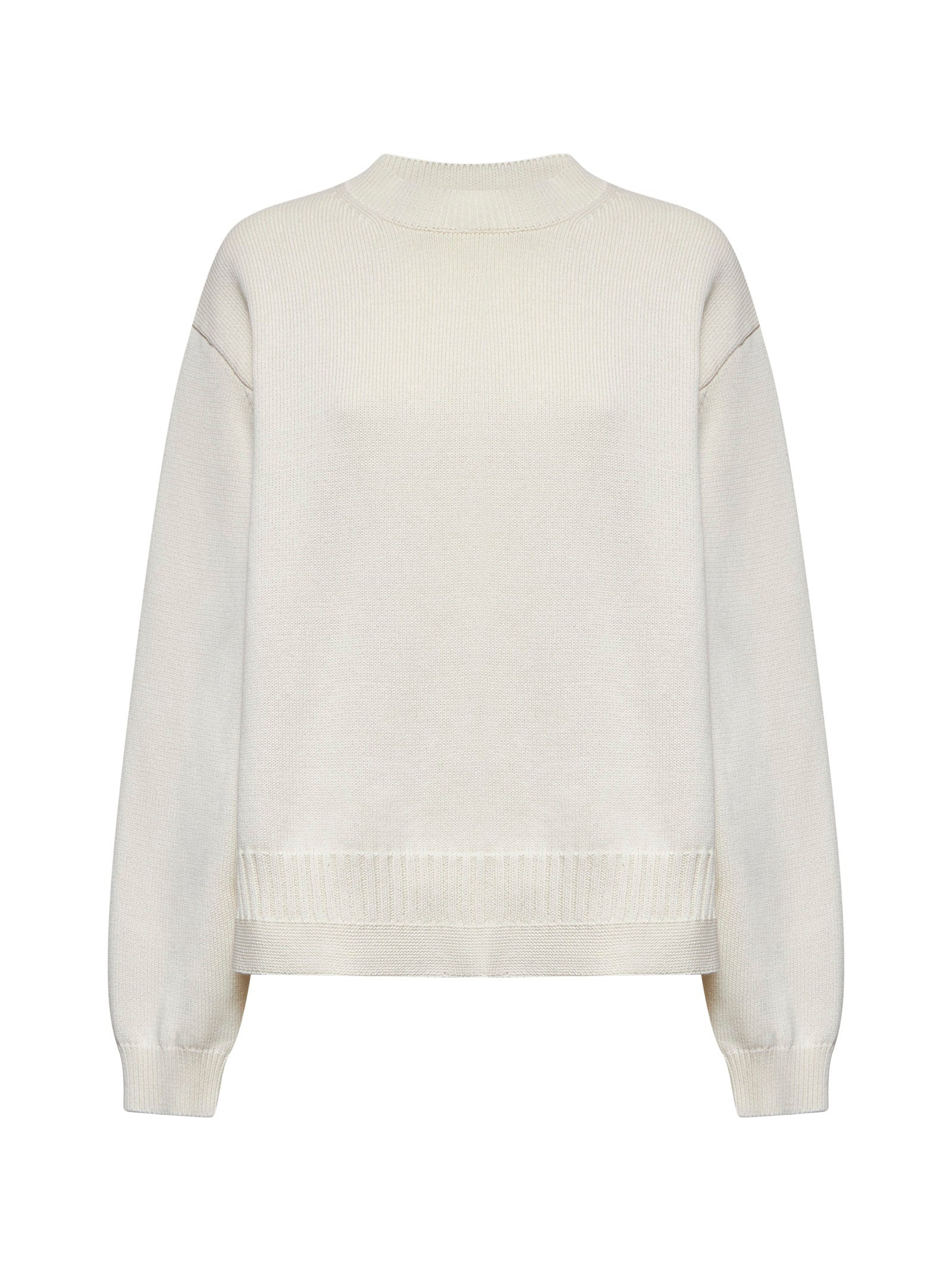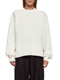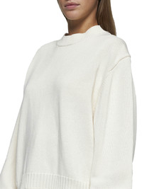 Studio Nicholson’s Paola ivory cotton sweater featuring a crew neck, dropped shoulders, long, soft sleeves and ribbed edges. Color: Parchment Size and fit: Model is 173 cm tall and wearing a size UK 8 Composition: 100% cotton Country of manifacture: Extra EU ID designer: PAOLASNW1486-PARCHMENT