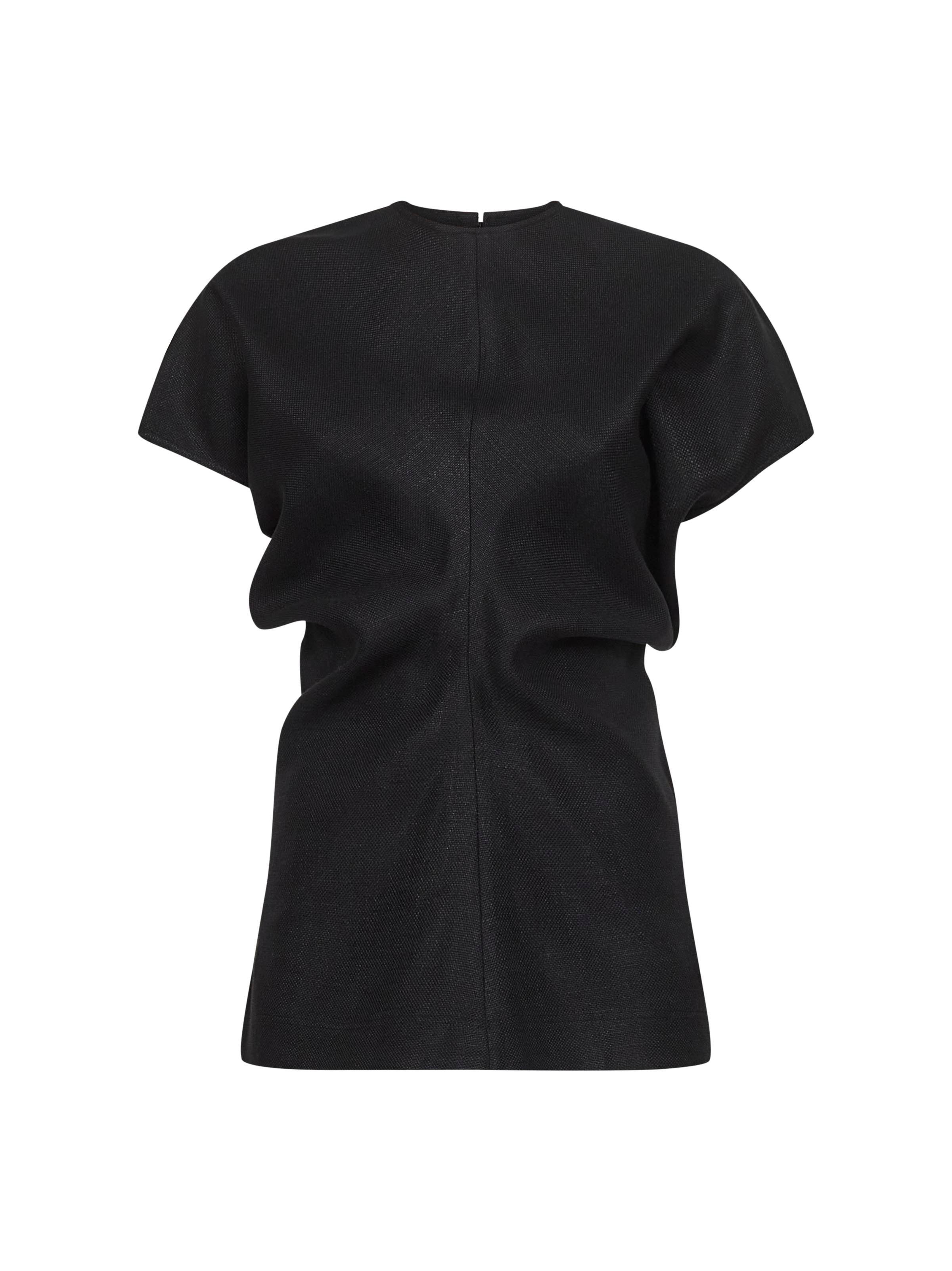 - Invisible back zip closure - Crewneck - Short kimono sleeves - Slouching effect at the waist - Mid-weight basketweave design constructed from curved panels sewn together - Slim fit - Black color - 68% viscose, 24% linen, 8% organic cotton - Made in portugal Synthetic: viscose68 % Natural (Veg): Linen/Flax24 % Natural (Veg): Organic Cotton8 % Made in: Portugal Season: A25 253WRT0331FB0461-001