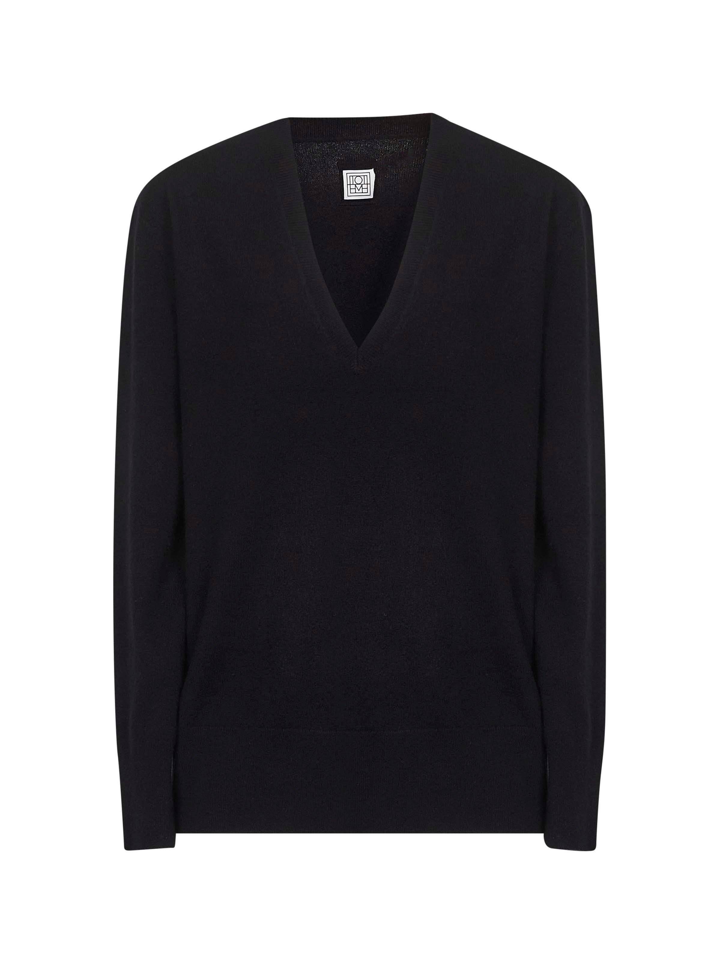 - Deep ribbed v-neckline - Long sleeves, dropped shoulders - Ribbed cuffs and bottom band - Long cut - Oversized fit - Black color - 100% cashmere - Made in extra eu Wool or fine animal hair: Cashmere100 % Made in: China Season: A25 252WRT0521YA0016-001