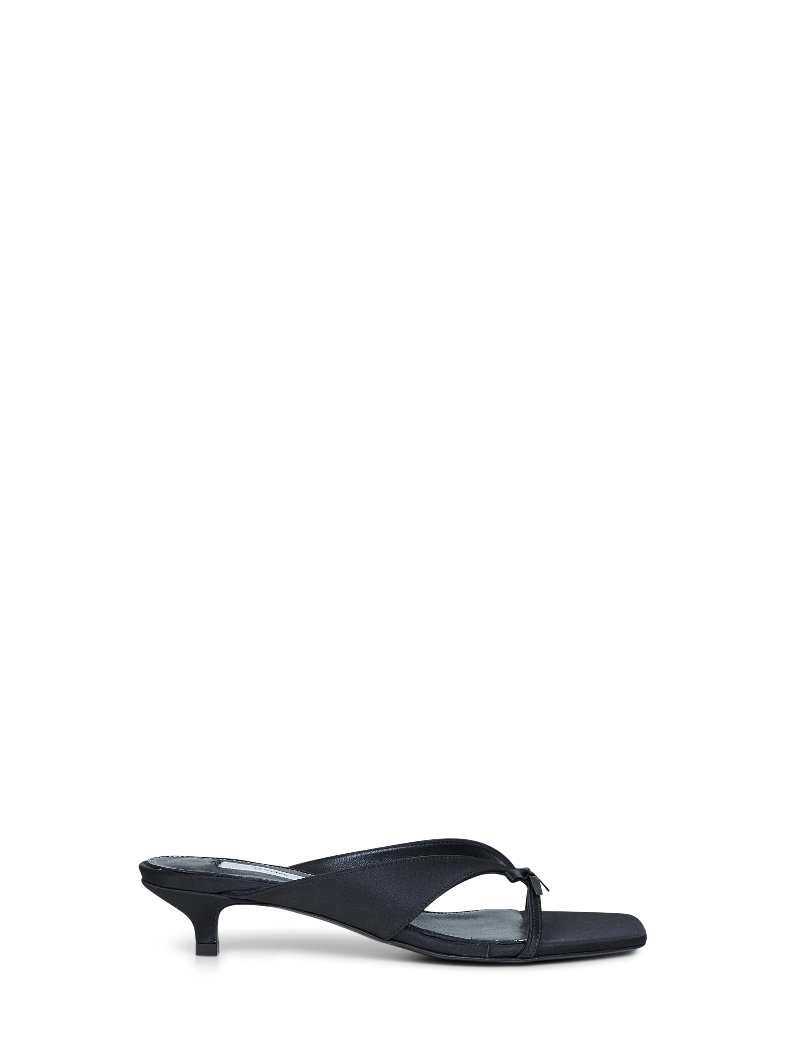 - Slip-on - Square toe - Asymmetric satin straps with satin bow detail at front - Satin-covered kitten heel - Leather lining and insole - Leather sole - Heel height: 35mm - Regular fit; the shoe corresponds to a it 38 size - Black color - 87% recycled polyester, 13% polyurethane - Made in italy Synthetic: Recycled Polyester87 % Synthetic: Polyurethane13 % Made in: ITALIA Season: P26 261WAS0278FB0401-001