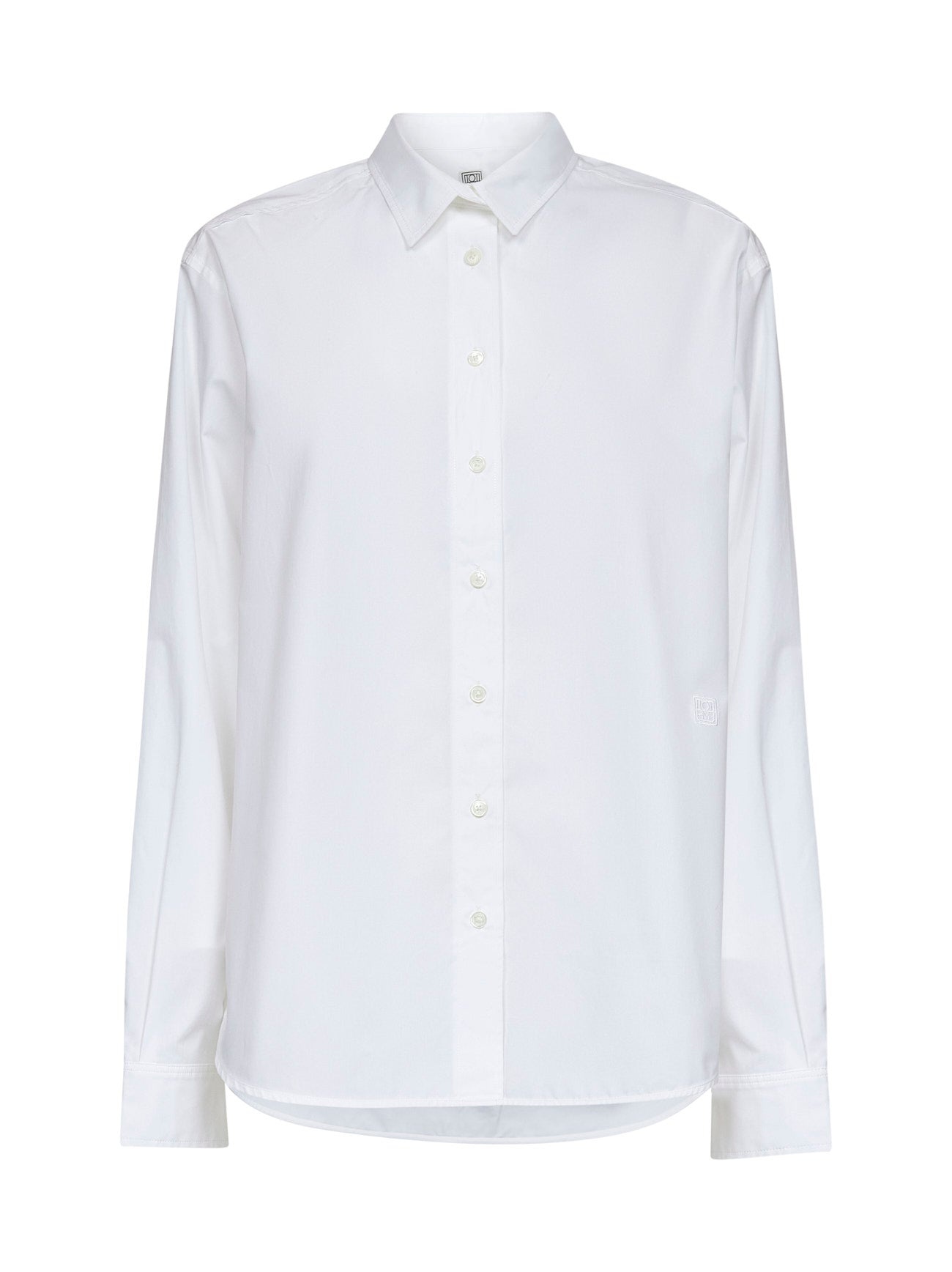 - Front button placket - Classic collar - Long sleeves, buttoned cuffs - Tone-on-tone monogram embroidered at front - Back yoke with pleats - Dipped back hem - Mother-of-pearl buttons - Oversized fit - White color - 100% organic cotton - Made in portugal Natural (Veg): Organic Cotton100 % Made in: Portugal Season: A25 243WRT810FB0119-047