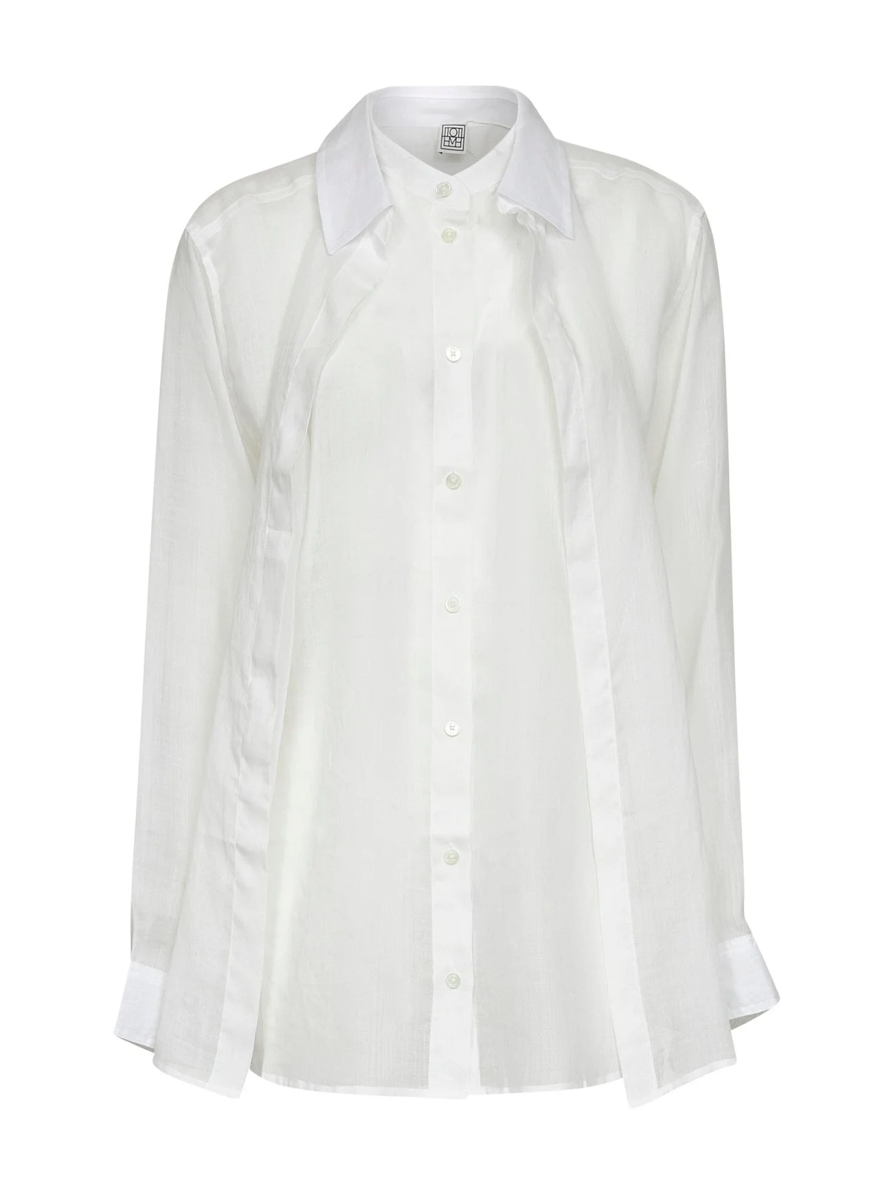 - Front button placket; double front panel detail - Pointed collar, mandarin collar - Long sleeves, buttoned cuffs - Back yoke with box pleats - Semi-sheer design - Relaxed fit - White color - 100% ramie - Made in portugal Natural (Veg): Ramie100 % Made in: Portugal Season: A25 253WRT0544FB0434-047