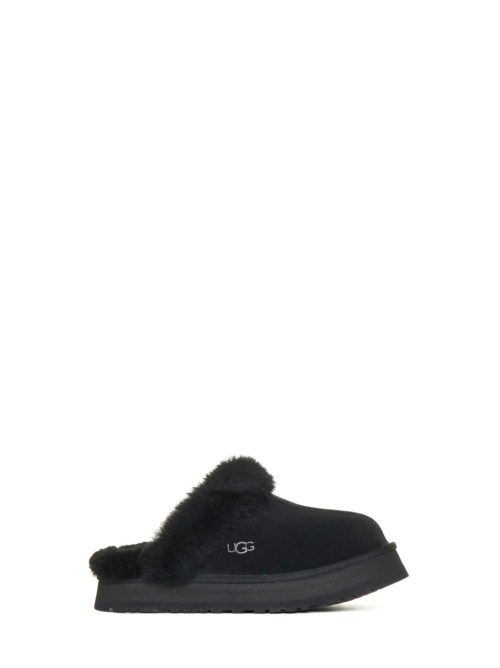 - Suede upper with sheepskin collar - Sheepskin lining - Sheepskin insole - Eva midsole - Sugarcane eva outsole - Binding made from recycled polyester fibers - Platform height: 2.54 cm - Woven logo label - Made in eu Furs & Skins: Calf Leather80 % Other: Other Materials20 % Made in: Vietnam Season: A25 1122550-BLK