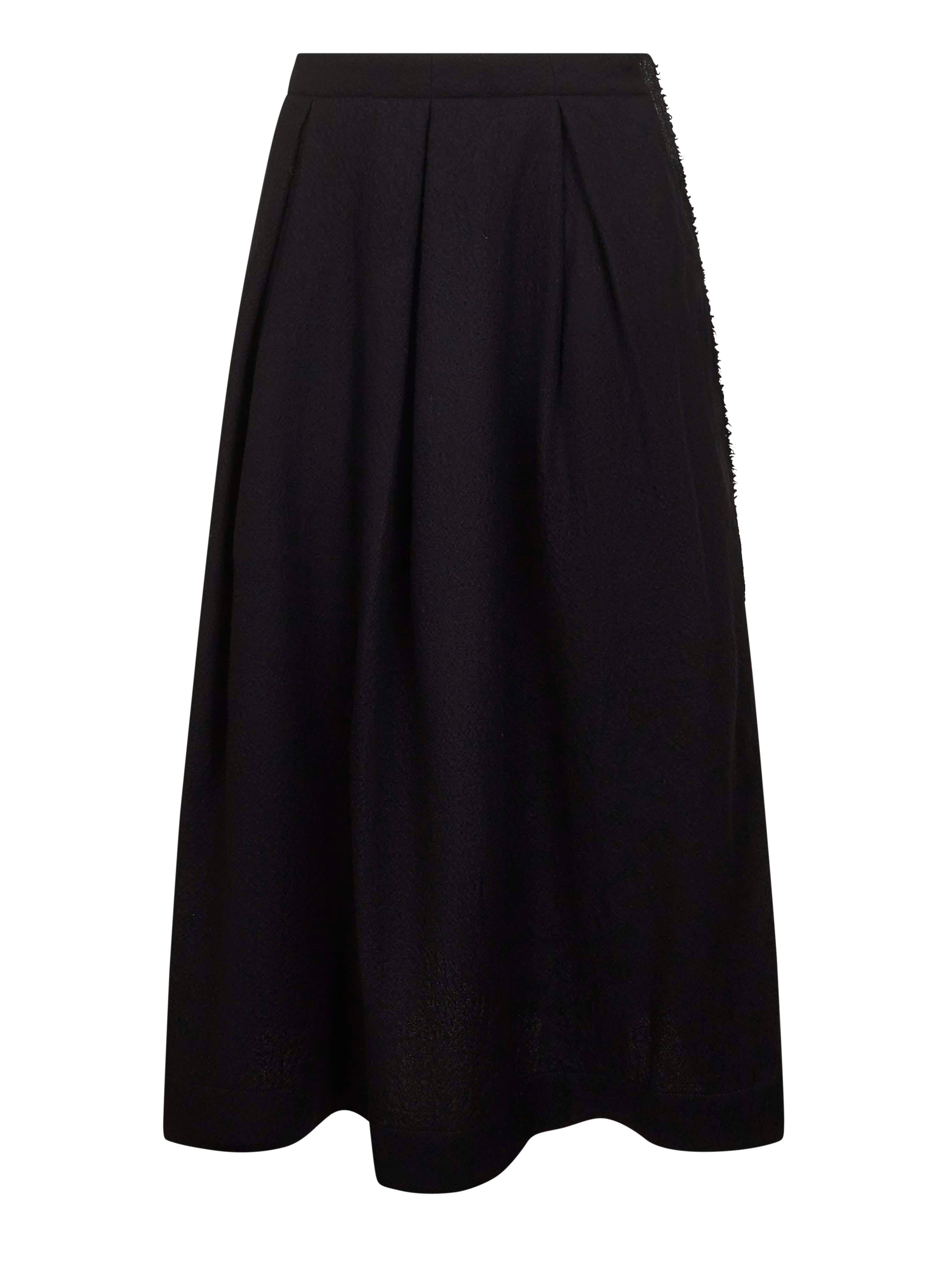 - Side concealed hooks closure - Fringed edge along the left side - Inverted pleats - Ankle length - Flared fit - Black color - 100% virgin wool - Made in italy Wool or fine animal hair: Virgin Wool100 % Made in: ITALIA Season: A25 UP2007-UW900