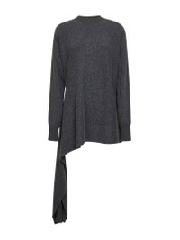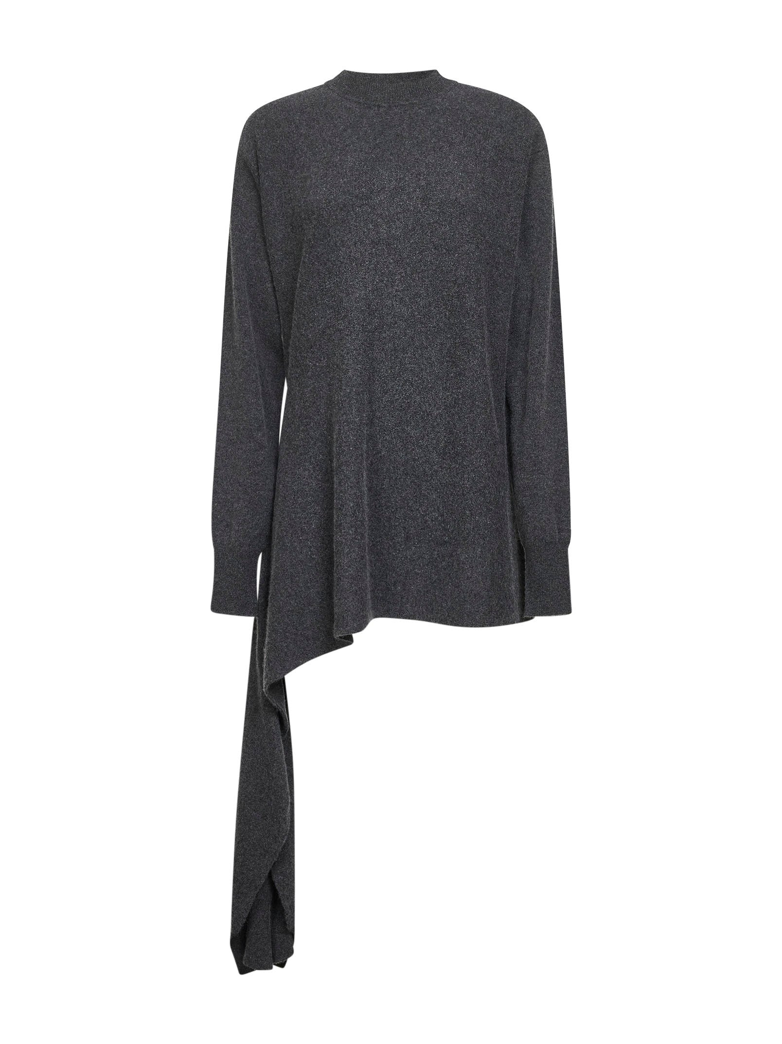 - Ribbed crewneck - Long sleeves, soft shoulders, ribbed cuffs - Long side slit at right hip; ruffle-style panels detailing at hip with ribbed trim - Asymmetric hem - Plain stitch knit design - Regular fit - Grey color - 100% cashmere - Made in italy Wool or fine animal hair: Cashmere100 % Made in: ITALIA Season: A25 UK7132-UW890